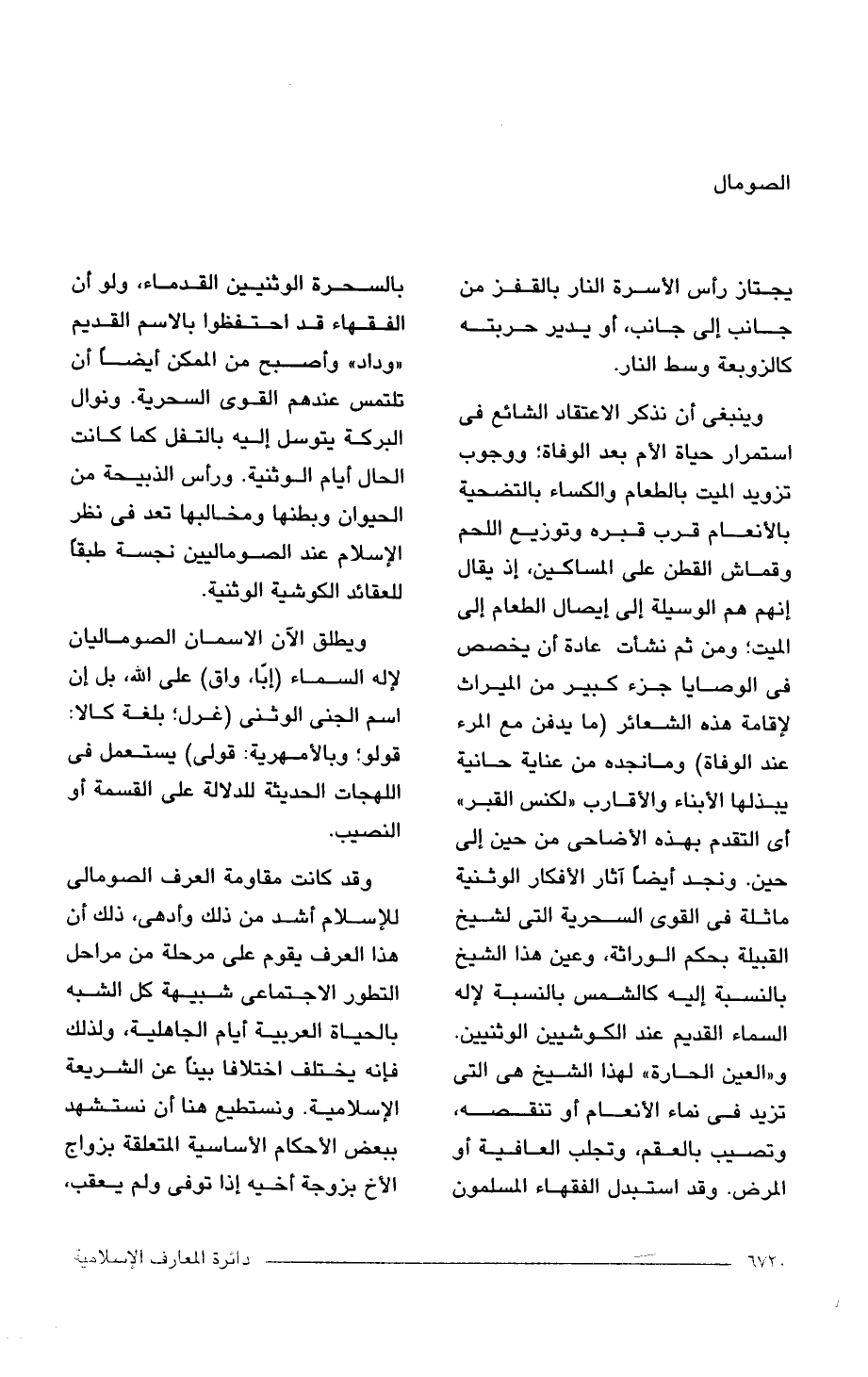 وقد كانت مقاومة العرف الصومالى للإسلام أشد من ذلك وأدهى، ذلك أن هذا العرف يقوم على مرحلة من مراحل التطور الاجتماعى شبيهة كل الشبه بالحياة العربية أيام الجاهلية، ولذلك فإنه يختلف اختلافا بينا عن الشريعة الإسلامية. ونستطيع هنا أن نستشهد ببعض الأحكام الأساسية المتعلقة بزواج الأخ بزوجة أخيه إذا توفى ولم يعقب،