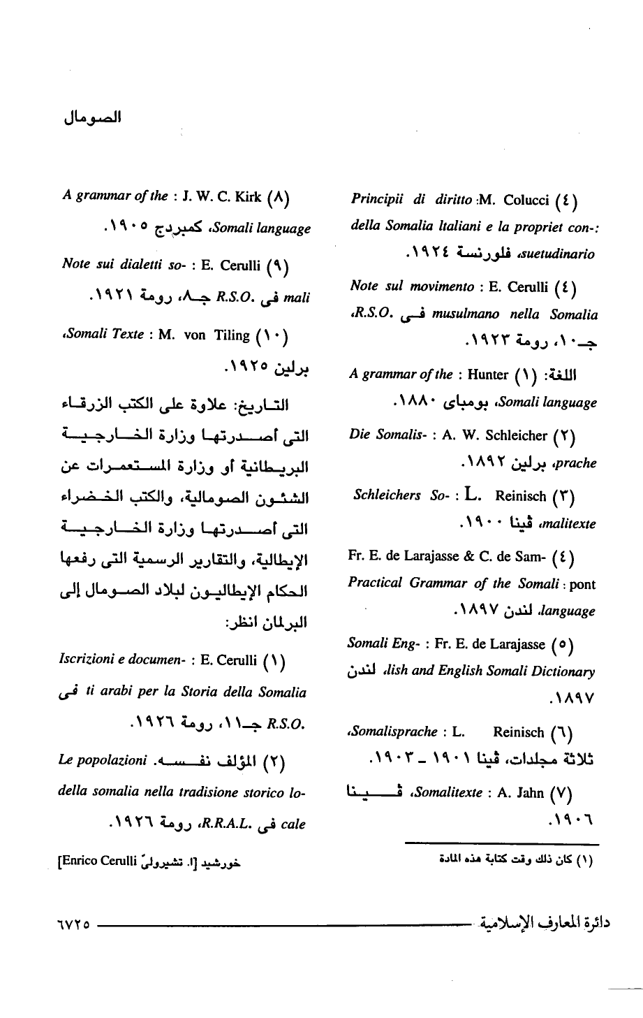 (9) Note sui dialetti somali: E. Cerulli، فى R.S.O جـ 8، رومة 1921.