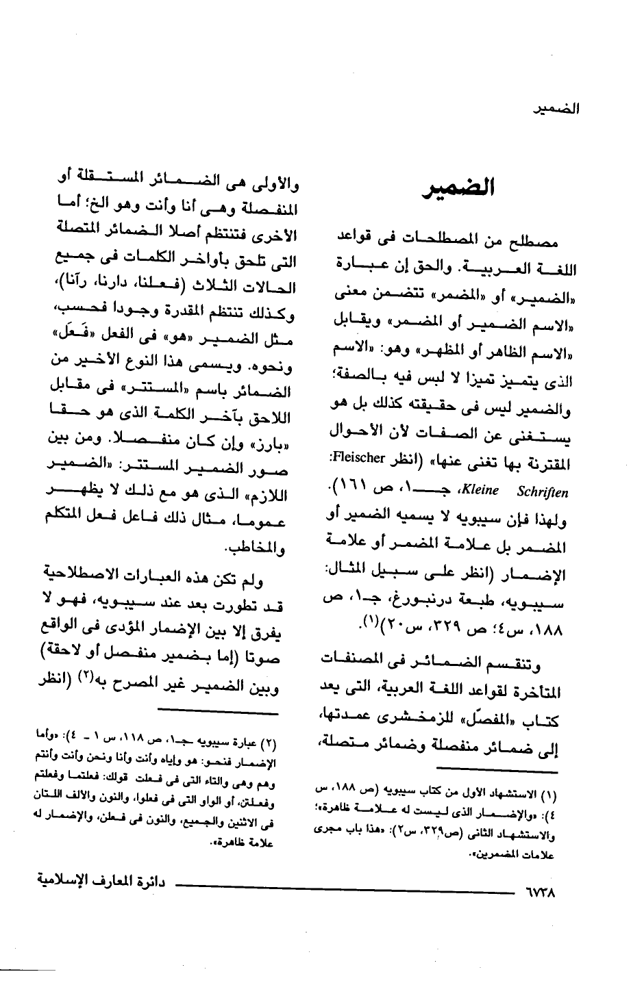 ولهذا فإن سيبويه لا يسميه الضمير أو المضمر بل علامة المضمر أو علامة الإضهمار (انظر على سبيل المثال: سيبويه، طبعة درنبورغ، جـ 1، ص 188، س 4؛ ص 329، س 20) (¬1).