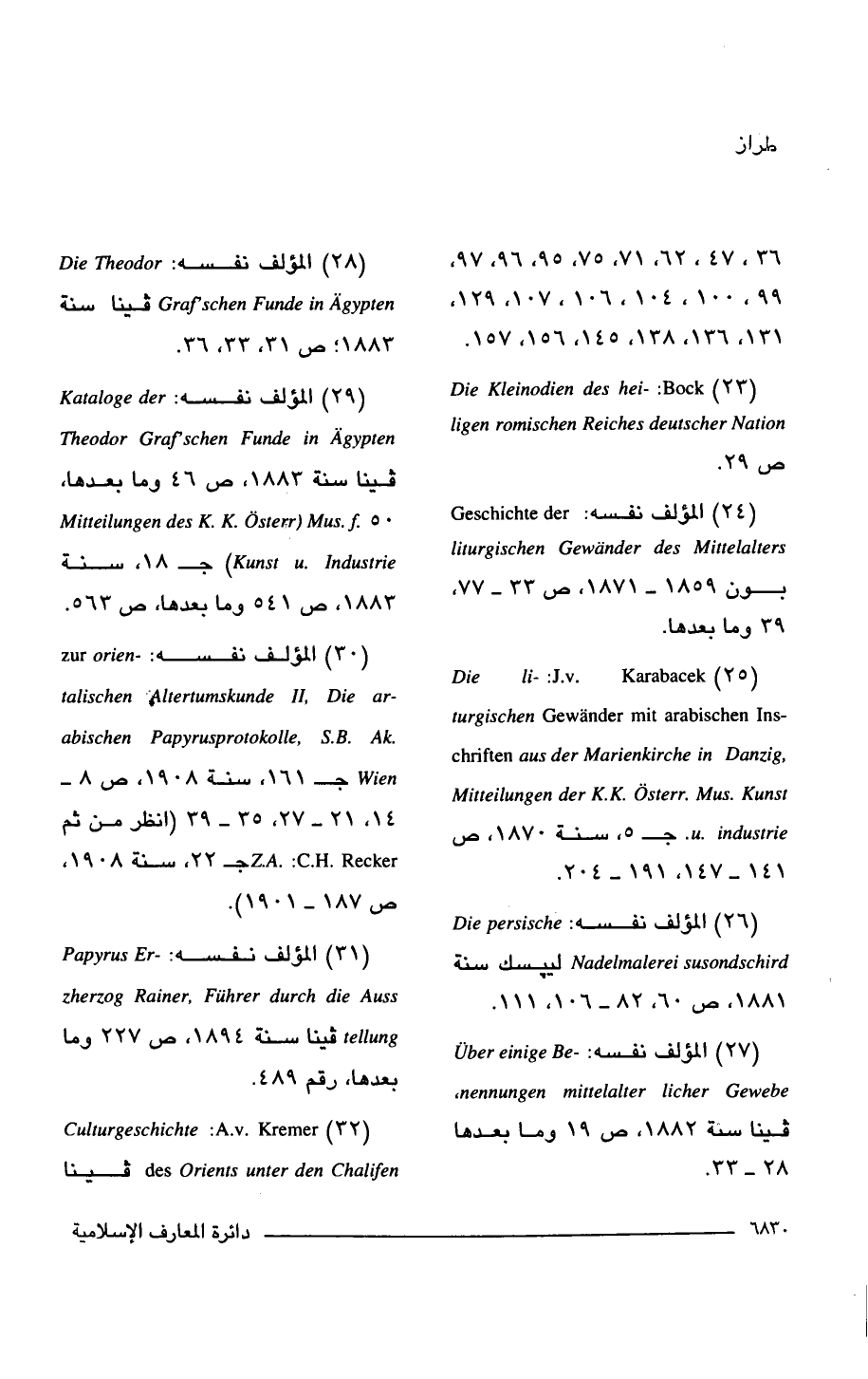 (27) المؤلف نفسه: Uber einige Benennungen mittelalter licher Gewebe فينا سنة 1882، ص 19 وما بعدها 28 - 33.