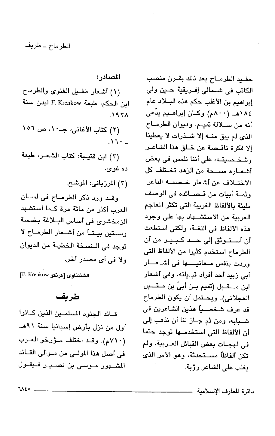 (1) أشعار طفيل الغنوى والطرماح ابن الحكم، طبعة F.Krenkow ليدن سنة 1928.