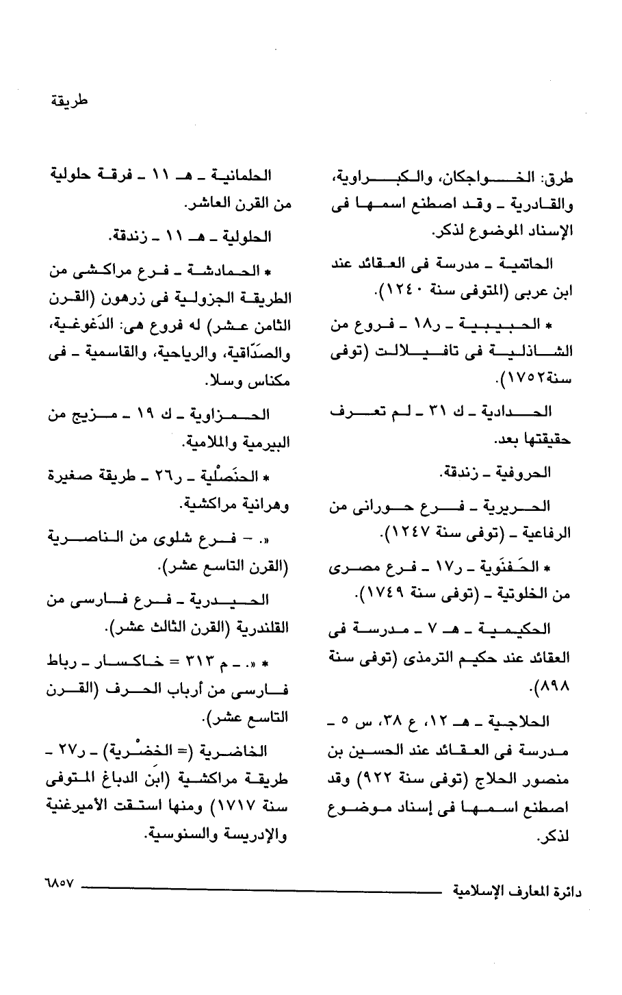 الخاضرية (= الخِضْرية) -ر 27 - طريقة مراكشية (ابن الدباغ المتوفى سنة 717) ومنها استقت الأميرغنية والإدريسة والسنوسية.