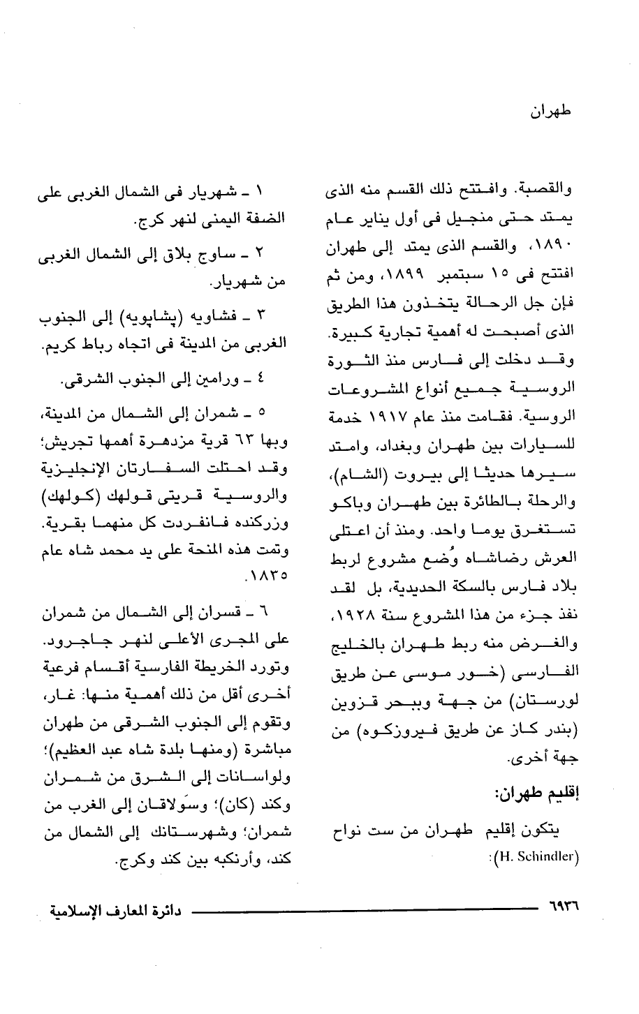 يتكون إقليم طهران من ست نواح (H.Schindler):