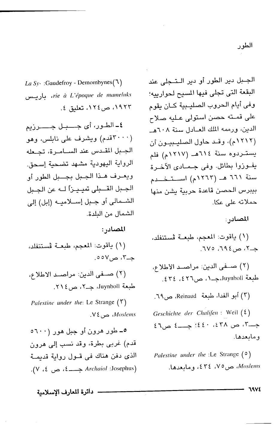 (5) Palestin und the Moslems: Le Strange، ص 75، 434، وما بعدها.