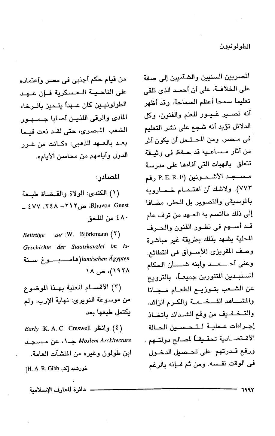 (4) وانظر Early Moslem Arckitecture: k.A.C.creswell جـ 1، عن مسجد ابن طولون وغيره من المنشآت العامة.