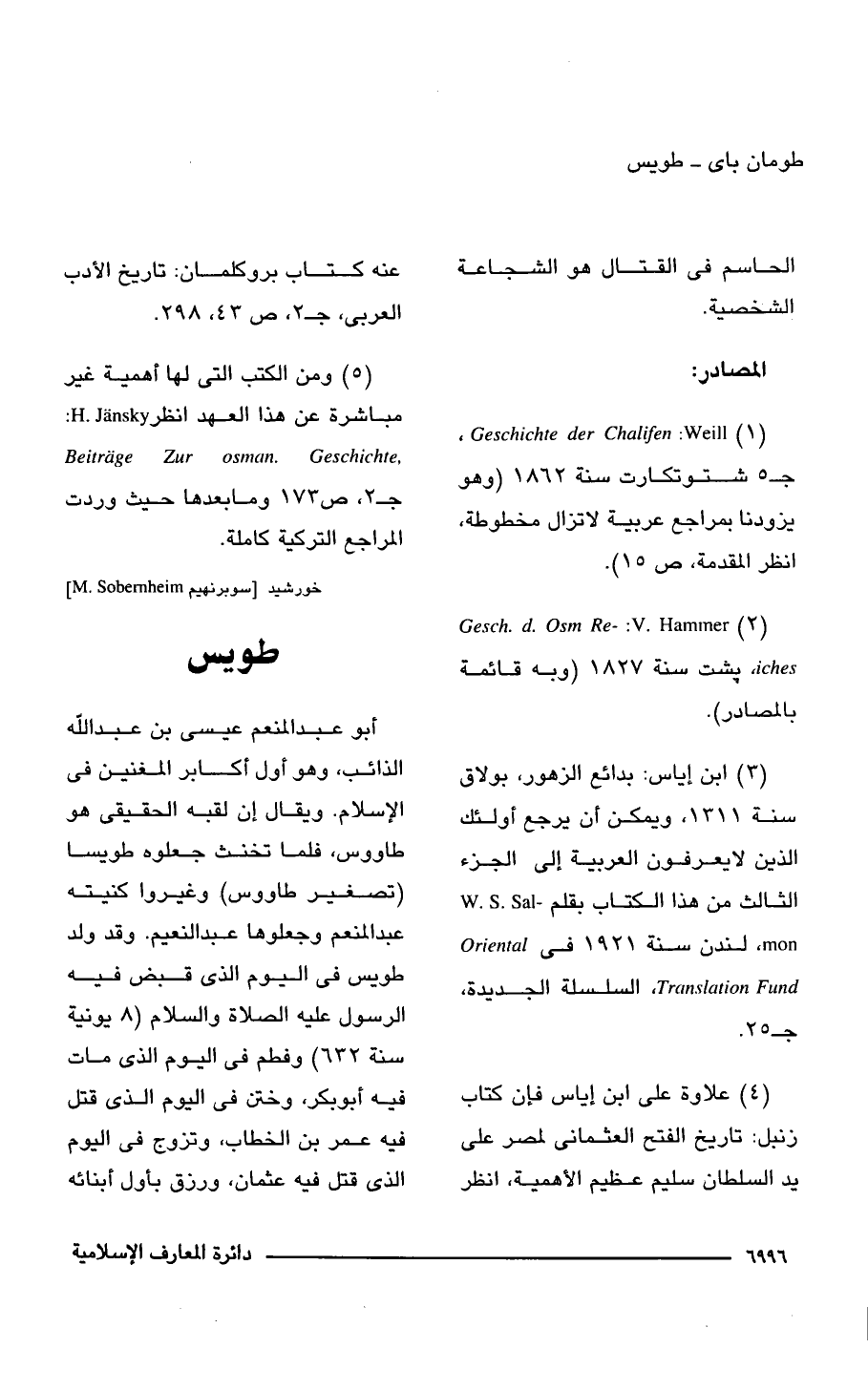 (1) Geschichte der Chalifen: Weill، جـ 5 شتوتكارت سنة 1862 (وهو يزودنا بمراجع عربية لا تزال مخطوطة، انظر المقدمة، ص 15).
