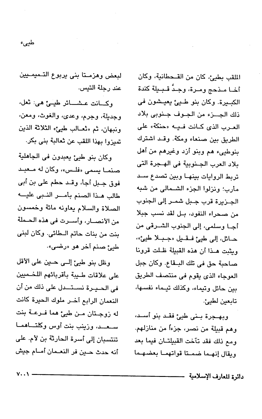 وكانت عشائر طيئ هى: ثعل، وجديلة، وجرم، وعدى، والغوث، ومعن، ونبهان، ثم "ثعالب طيئ" الثلاثة الذين تميزوا بهذا اللقب عن ثعالبة بنى بكر.