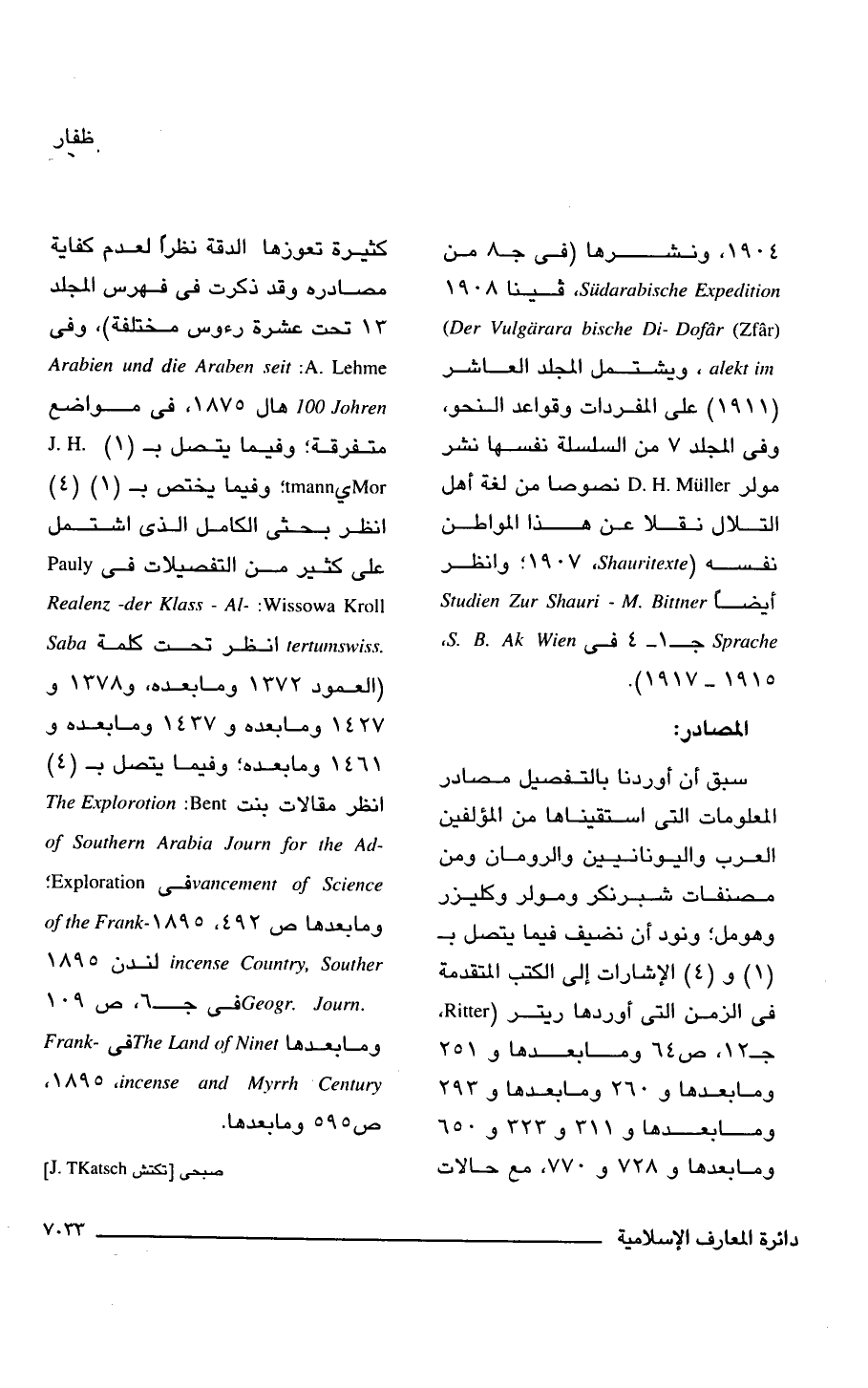 1904، ونشرها (فى جـ 8 من Sudarabische Expedition، فينا 1908 alekt im(Der Vulgarara bische Di-Dofar (Zfar), ويشتمل المجلد العاشر (1911) على المفردات وقواعد النحو، وفى المجلد 7 من السلسلة نفسها نشر مولر D.H.Muller نصوصًا من لغة أهل التلال نقلا عن هذا المواطن نفسه (Shauritexte، 1907؛ وانظر أيضًا Studien Zur Shauri-M. Bitter Sprache، جـ 1 - 4 فى S.B.A.K.Wien (1915 - 1917).