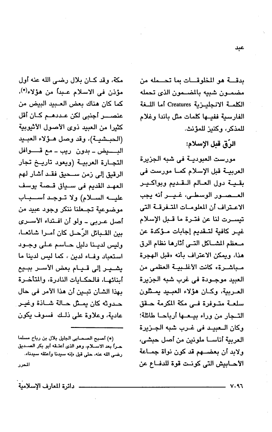 (*) أصبح الصحابى الجليل بلال بن رباح مسلما حرًا بعد الإسلام، وهو الذى أعتقه أبو بكر الصديق رضى اللَّه عنه، حتى قيل "إنه سيدنا وأعتقه سيدنا". المحرر
