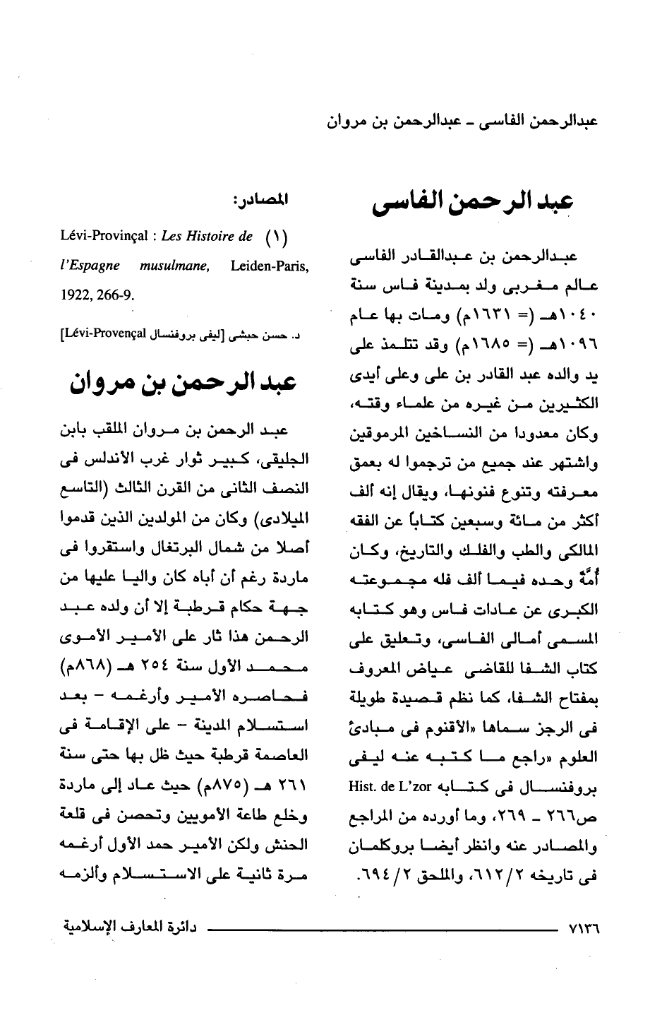 (1) Levi-Provincal: Les Histoire de L'Espegne musulmane, Leiden-Paris 1922, 266 - 9.