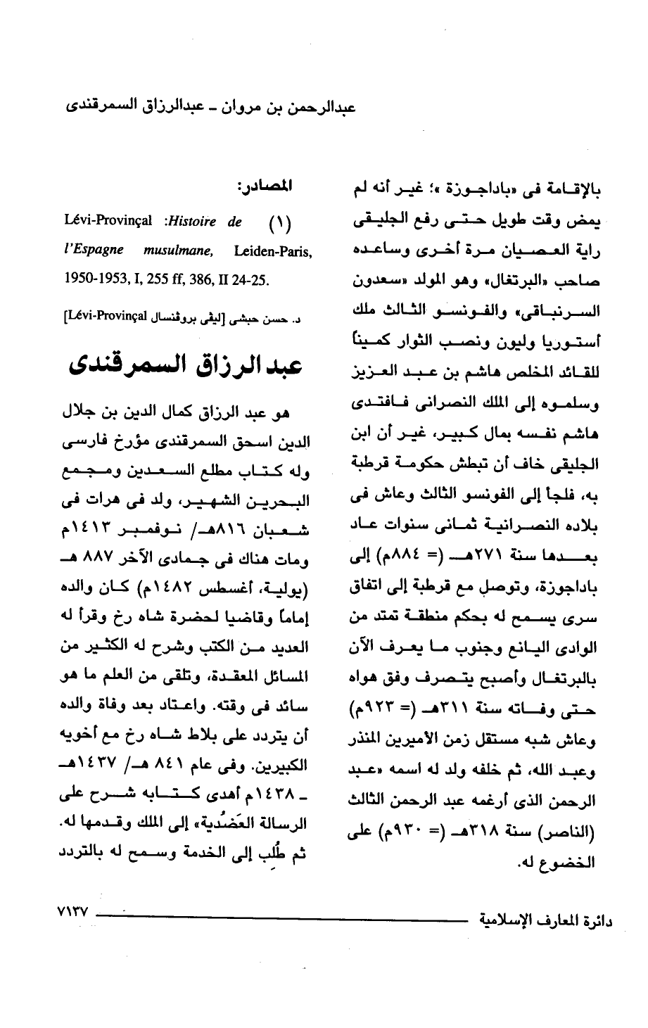 (1) Levi-Provincal: Histoire de L'Espagne musulmane, Leiden-Paris 1950 - 1953, I, 255 ff, II 24 - 25.