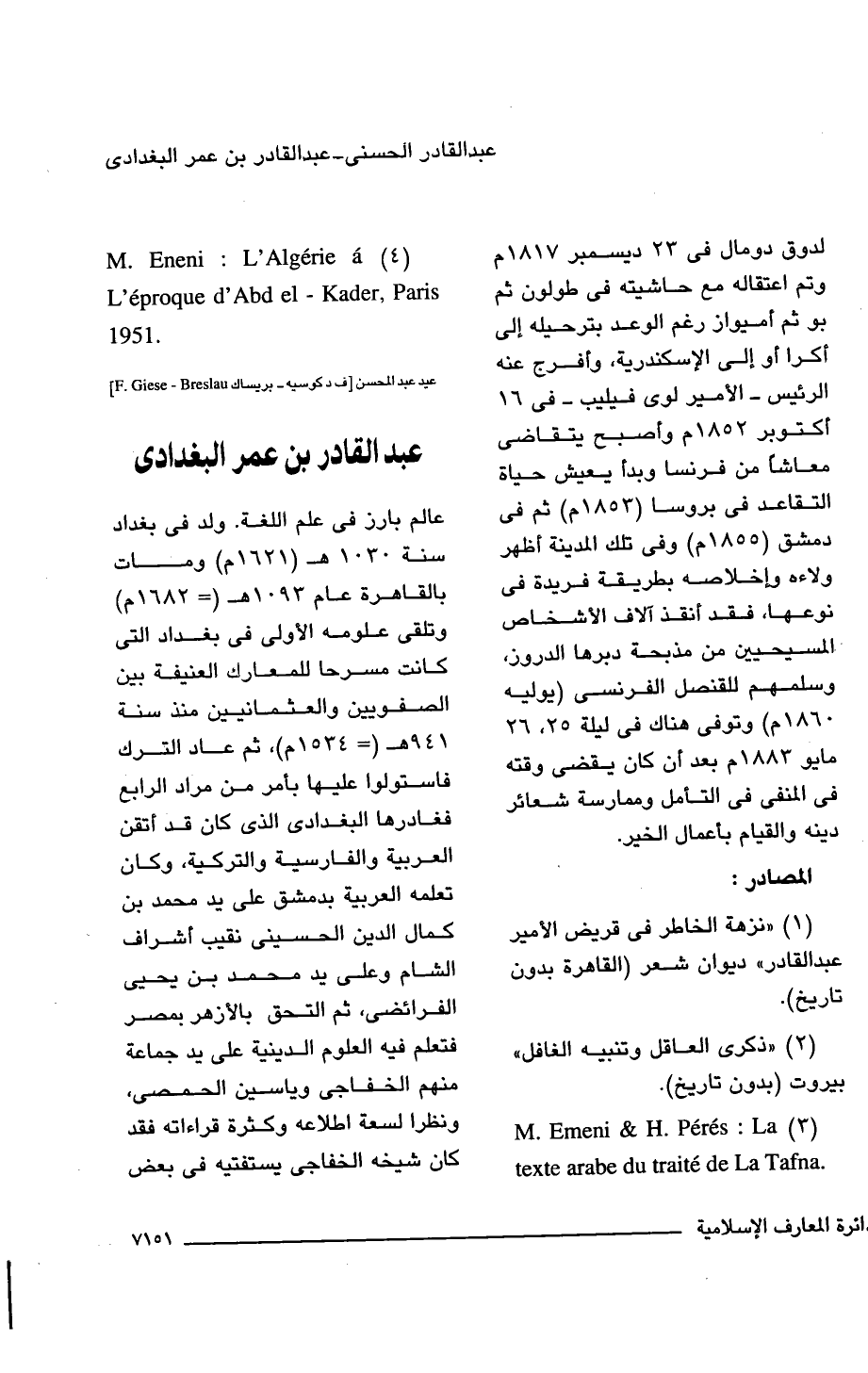 (4) M. Eneni: L'Algerie a L'eproque d'Abd el-Kader, Paris 1951.
