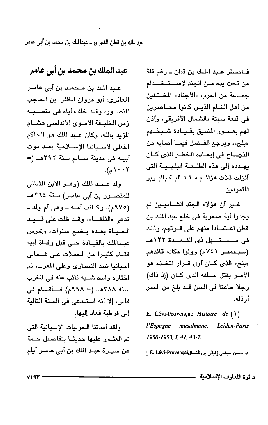 (1) E. Levi-Provencal: Histoire de l'Espagne musulmane, Leiden-Paris 1950 - 1953,1,41,43 - 7