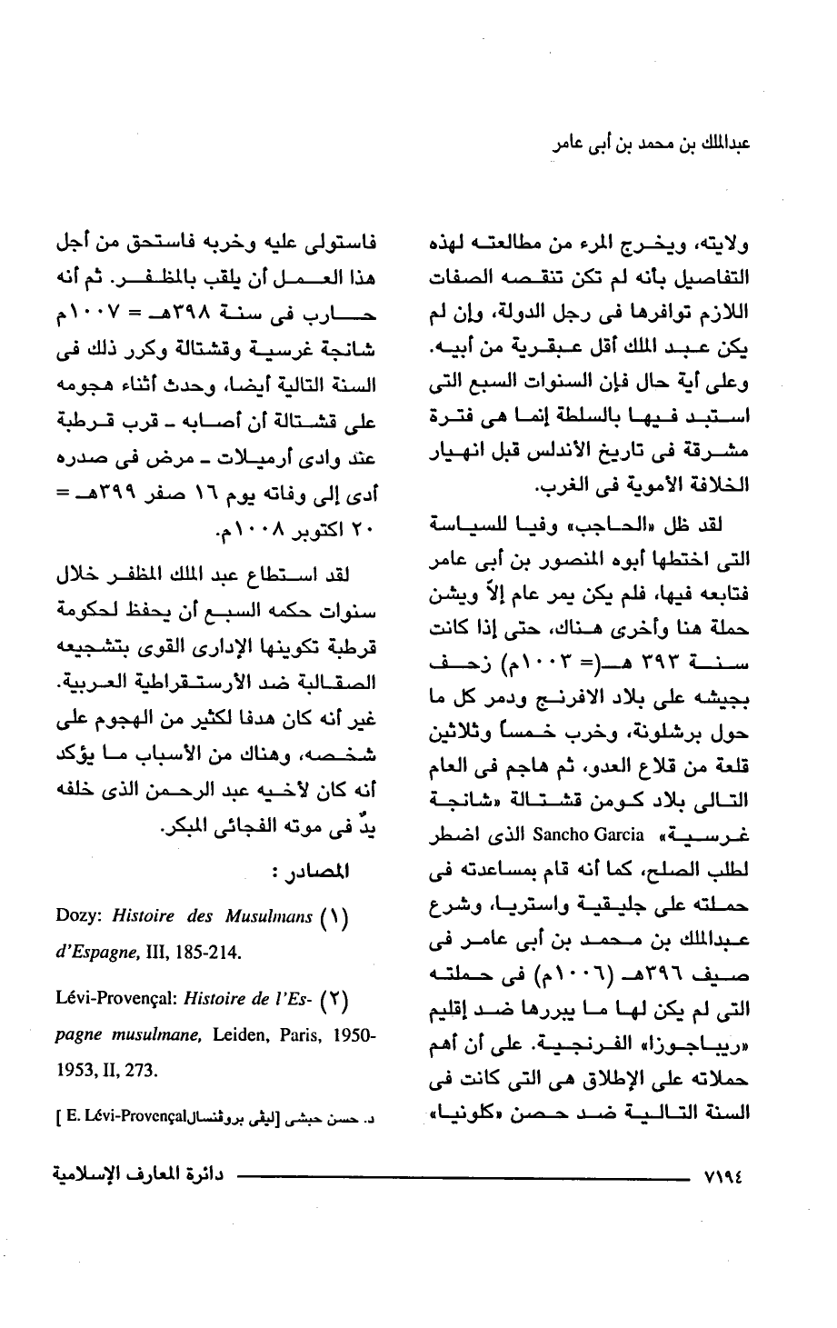 (1) Dozy: Histoire des Musulmans III, d'Espagne, III, 185 - 214