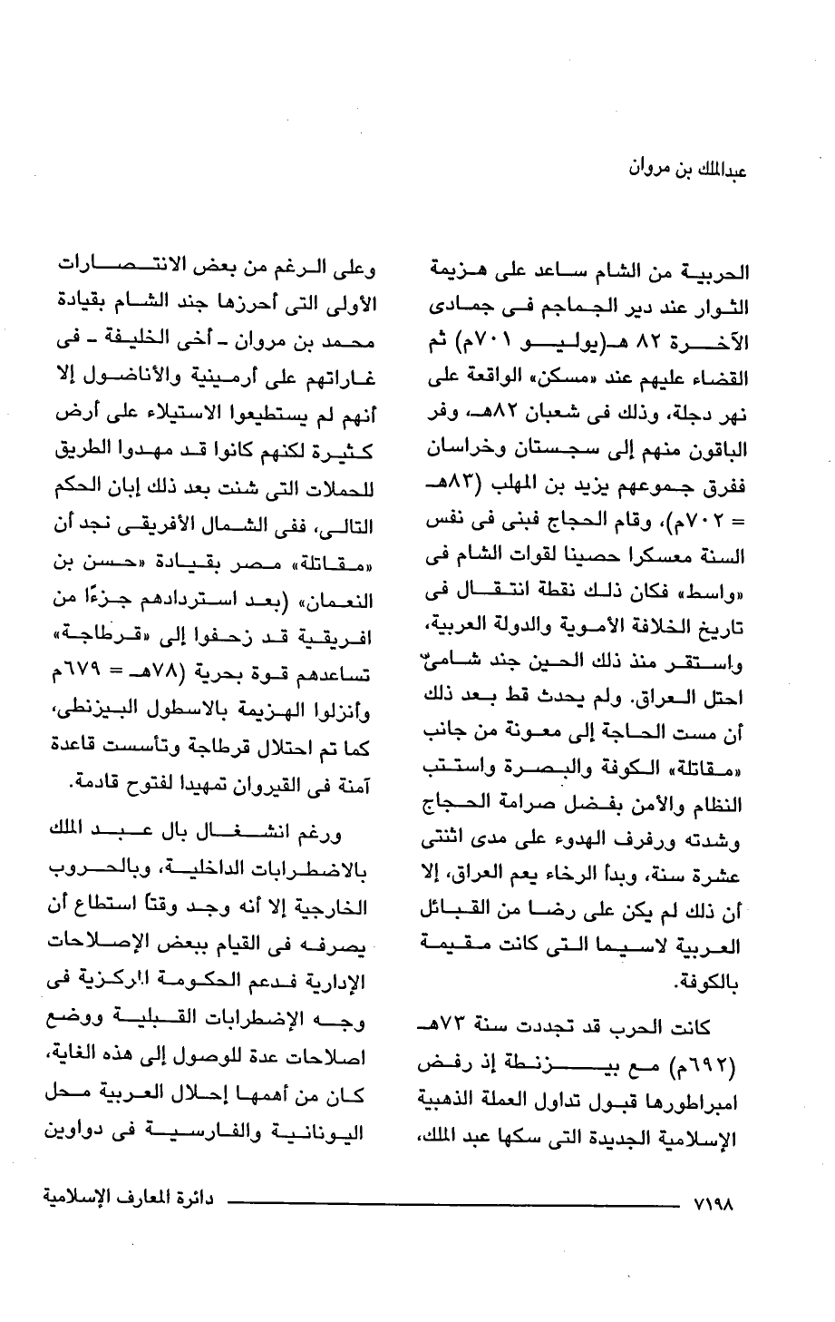 الحربية من الشام ساعد على هزيمة الثوار عند دير الجماجم فى جمادى الآخرة 82 هـ (يوليو 701 م) ثم القضاء عليهم عند "مسكن" الواقعة على نهر دجلة، وذلك فى شعبان 82 هـ، وفر الباقون منهم إلى سجستان وخراسان ففرق جموعهم يزيد بن المهلب (83 هـ = 702 م)، وقام الحجاج فبنى فى نفس السنة معسكرا حصينا لقوات الشام فى "واسط" فكان ذلك نقطة انتقال فى تاريخ الخلافة الأموية والدولة العربية، واستقر منذ ذلك الحين جند شامىّ احتل العراق. ولم يحدث قط بعد ذلك أن مست الحاجة إلى معونة من جانب "مقاتلة" الكوفة والبصرة واستتب النظام والأمن بفضل صرامة الحجاج وشدته ورفرف الهدوء على مدى اثنتى عشرة سنة، وبدأ الرخاء يعم العراق، إلا أن ذلك لم يكن على رضا من القبائل العربية لا سيما التى كانت مقيمة بالكوفة.