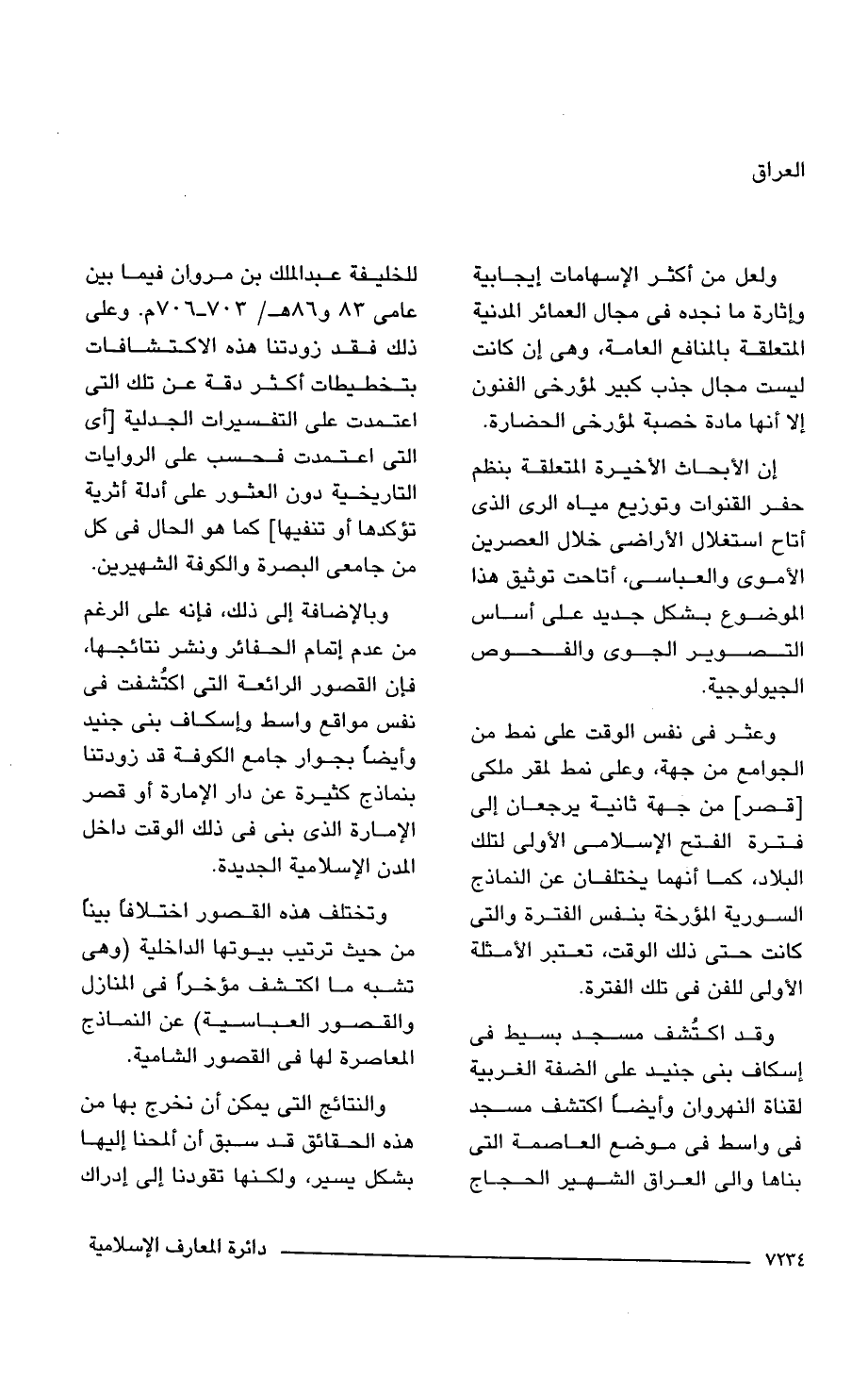 إن الأبحاث الأخيرة المتعلقة بنظم حفر القنوات وتوزيع مياه الرى الذى أتاح استغلال الأراضى خلال العصرين الأموى والعباسى، أتاحت توثيق هذا الموضوع بشكل جديد على أساس التصوير الجوى والفحوص الجيولوجية.