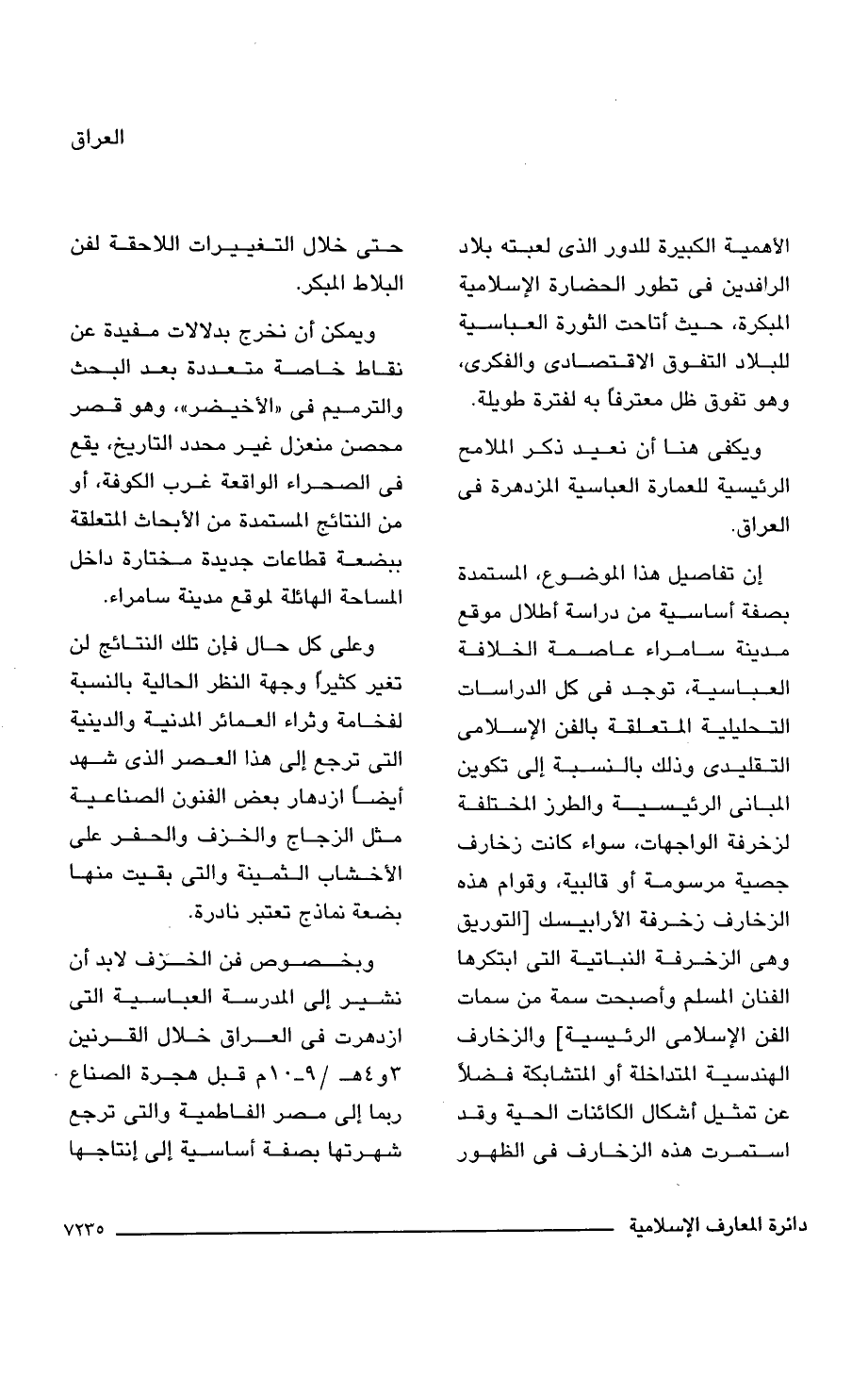 ويكفى هنا أن نعيد ذكر الملامح الرئيسية للعمارة العباسية المزدهرة فى العراق.