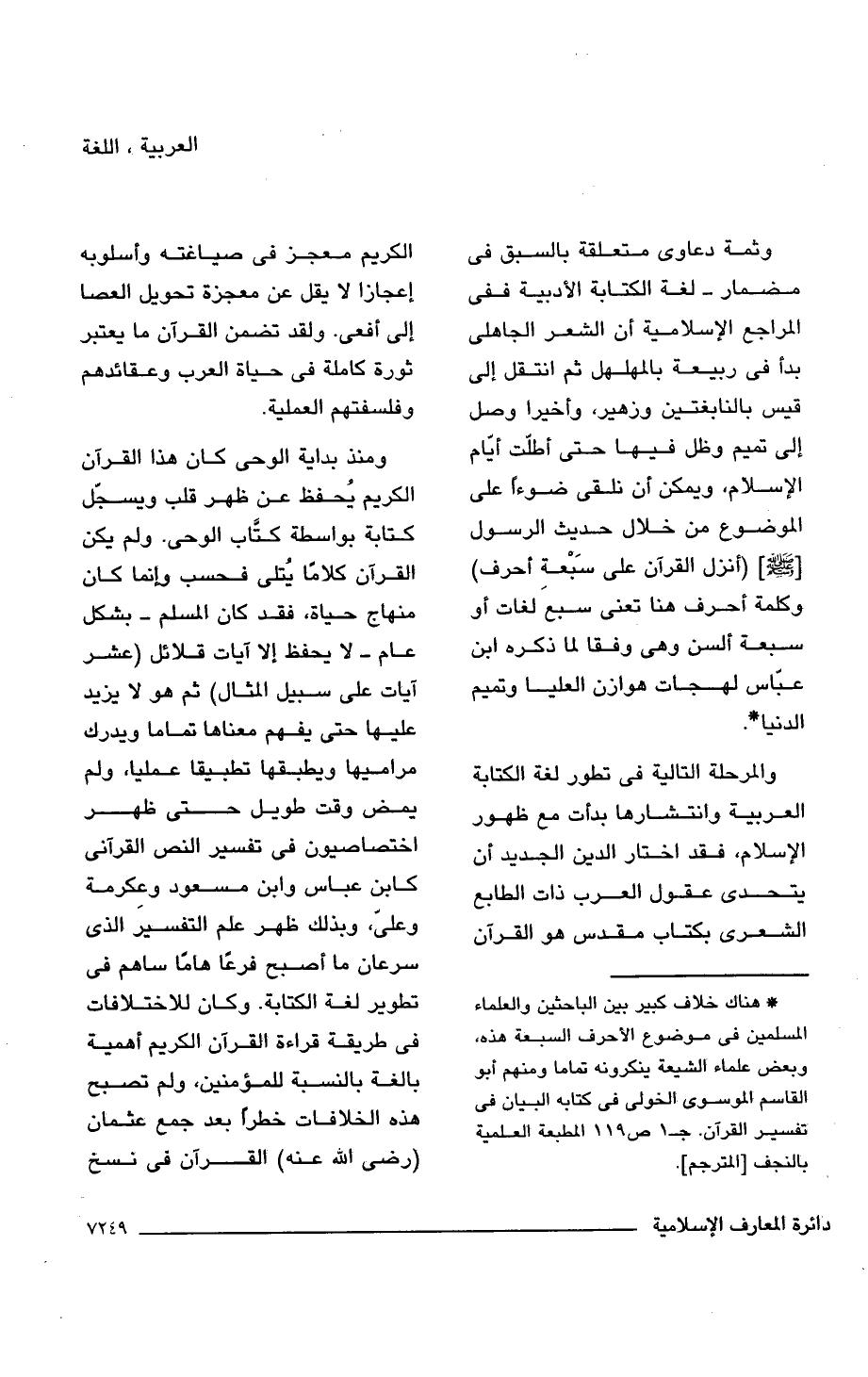 * هناك خلاف كبير بين الباحثين والعلماء المسلمين فى موضوع الأحرف السبعة هذه، وبعض علماء الشيعة ينكرونه تماما ومنهم أبو القاسم الموسوى الخولى فى كتابه البيان فى تفسير القرآن. جـ 1 ص 119 المطبعة العلمية بالنجف [المترجم].