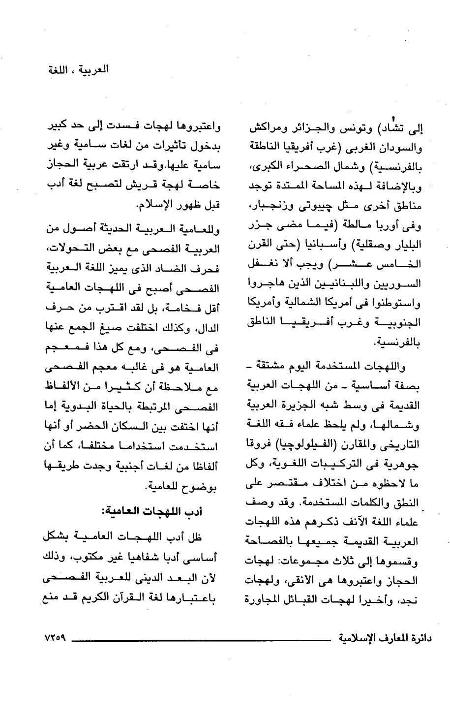 إلى تشاد) وتونس والجزائر ومراكش والسودان الغربى (غرب أفريقيا الناطقة بالفرنسية) وشمال الصحراء الكبرى، وبالإضافة لهذه المساحة الممتدة توجد مناطق أخرى مثل جيبوتى وزنجبار، وفى أوربا مالطة (فيما مضى جزر البليار وصقلية) وأسبانيا (حتى القرن الخامس عشر) ويجب ألا نغفل السوريين واللبنانيين الذين هاجروا واستوطنوا فى أمريكا الشمالية وأمريكا الجنوبية وغرب أفريقيا الناطق بالفرنسية.