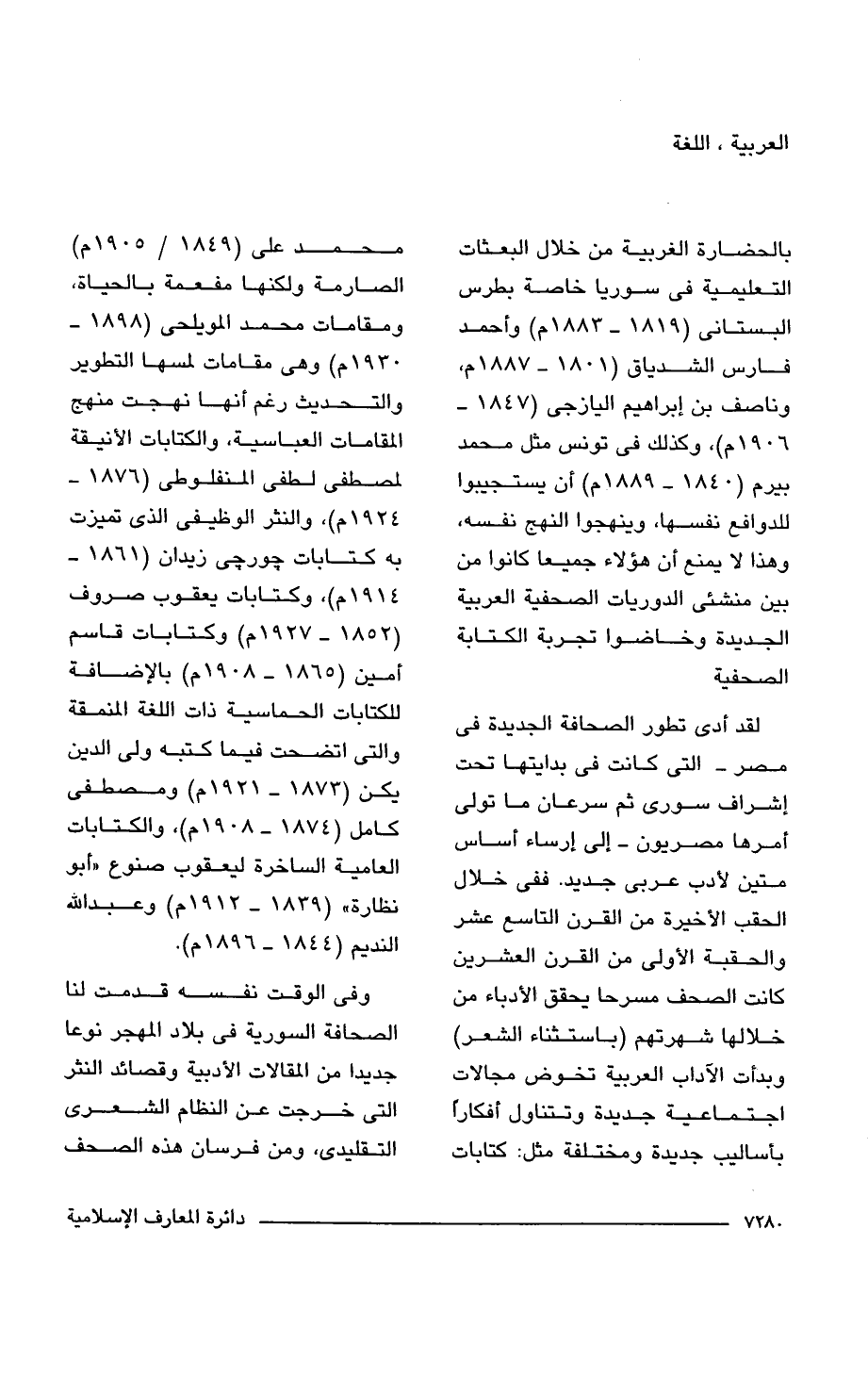 بالحضارة الغربية من خلال البعثات التعليمية فى سوريا خاصة بطرس البستانى (1819 - 1883 م) وأحمد فارس الشدياق (1801 - 1887 م، وناصف بن إبراهيم اليازجى (1847 - 1906 م)، وكذلك فى تونس مثل محمد بيرم (1740 - 1889 م) أن يستجيبوا للدوافع نفسها، وينهجوا النهج نفسه، وهذا لا يمنع أن هؤلاء جميعا كانوا من بين منشئى الدوريات الصحفية العربية الجديدة وخاضوا تجربة الكتابة الصحفية.