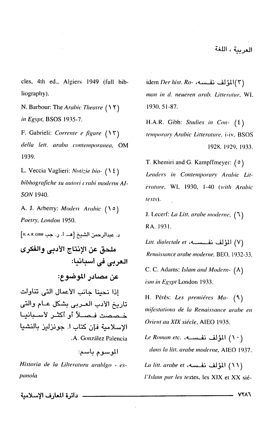(11) المؤلف نفسه، La litt. arabe et l'Islam par les textes, les XIX et XX siecles, 4 th ed Algiers 1949 (full bibliography