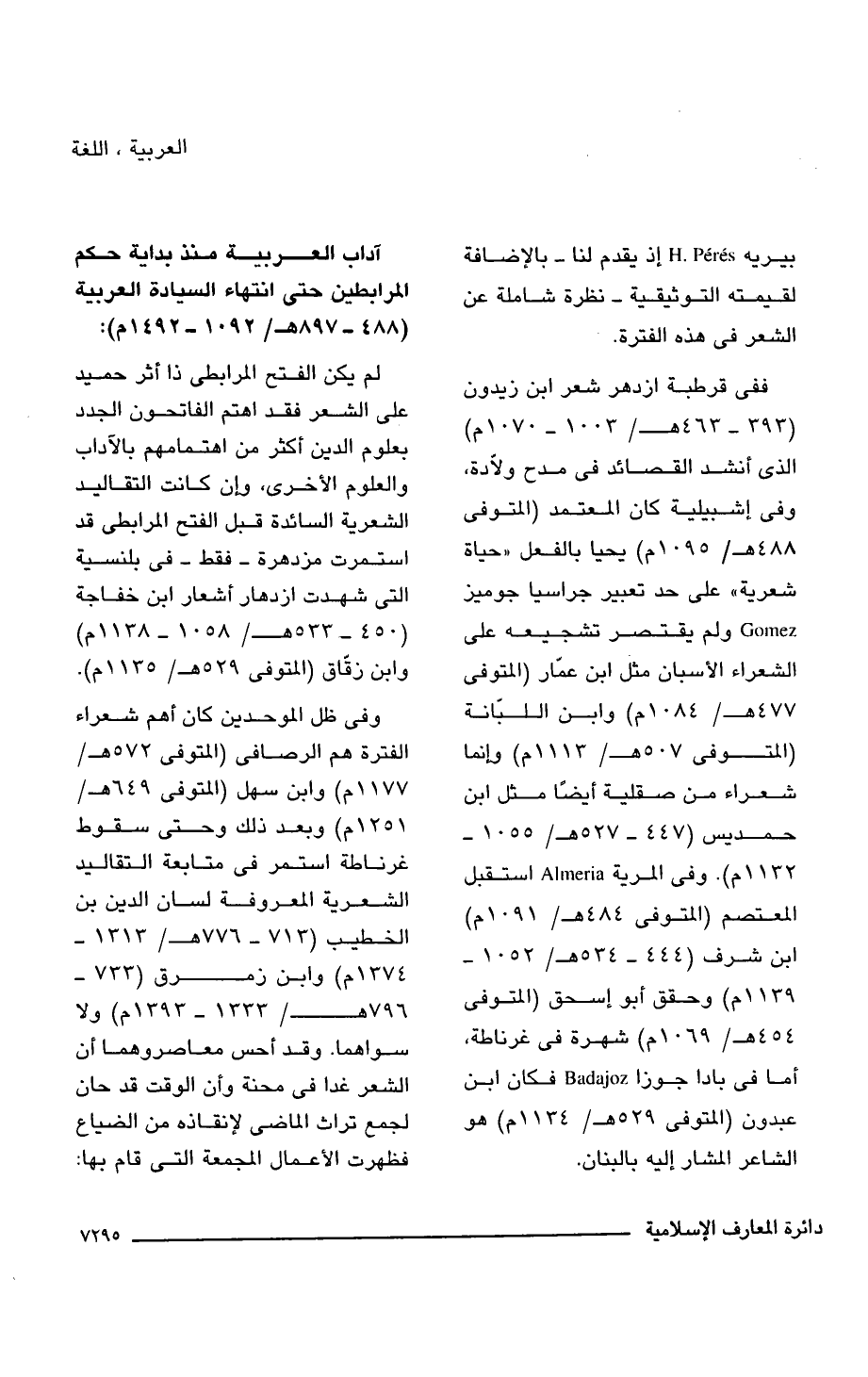 بيريه H. Peres إذ يقدم لنا -بالإضافة لقيمته التوثيقية- نظرة شاملة عن الشعر فى هذه الفترة.