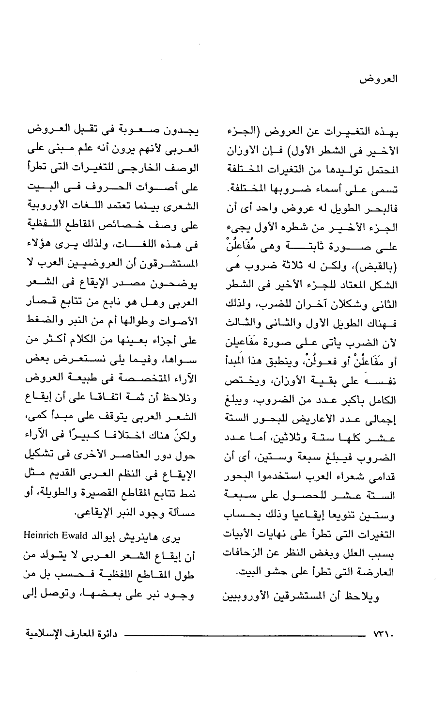 يرى هاينريش إيوالد Heinrich Ewald أن إيقاع الشعر العربى لا يتولد من طول المقاطع اللفظية فحسب بل من وجود نبر على بعضها، وتوصل إلى