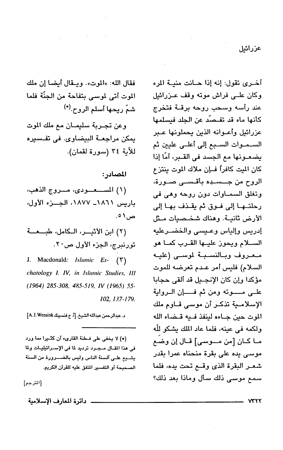 (3) J. Macdonald: IsIamic Eschatology l. IV, in Islamic Studies, III (1964) 285 - 308, 485 - 519,IV (1965) 55 - 102, 137 - 179