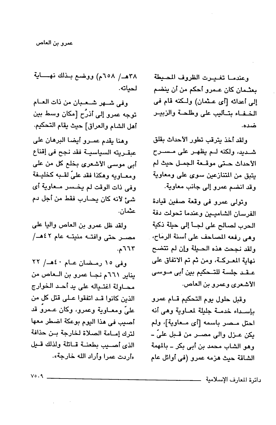 ولقد ظل عمرو بن العاص واليا على مصر حتى وافته منيته عام 42 هـ/ 663 م.