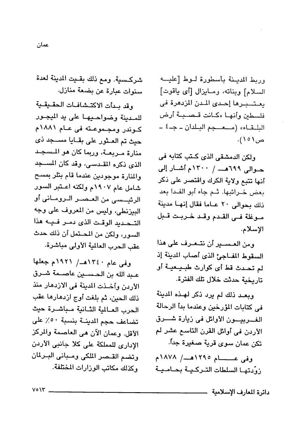 وبعد ذلك لم يرد ذكر لهذه المدينة فى كتابات المؤرخين وعندما بدأ الرحالة الغربيون الأوائل فى زيارة شرق الأردن فى أوائل القرن التاسع عشر لم تكن عمان سوى قرية صغيرة جدًا.