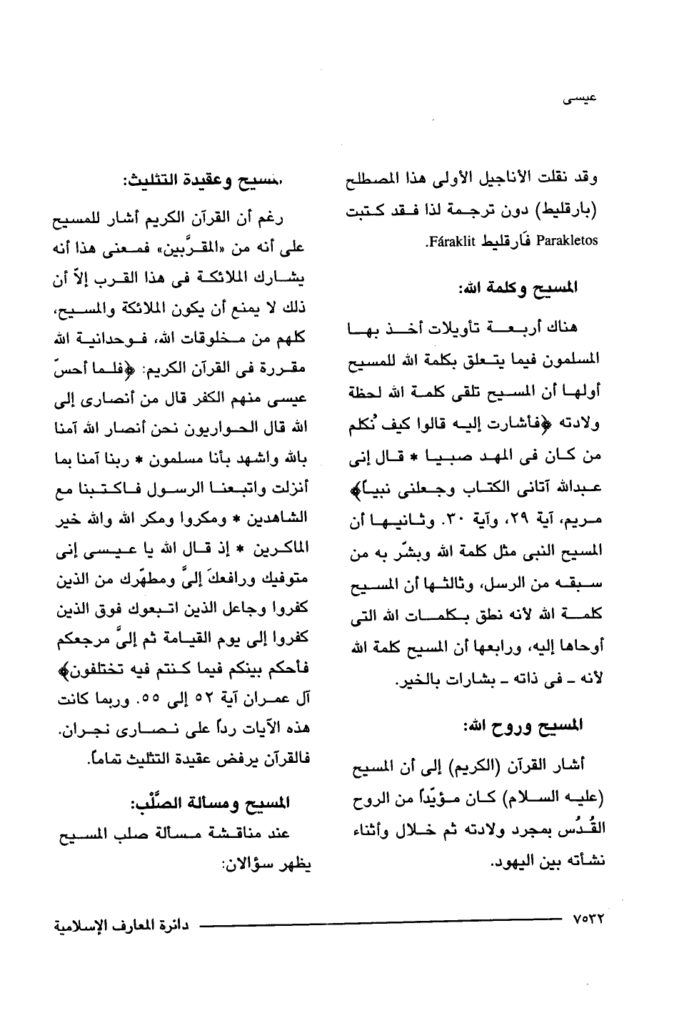 رغم أن القرآن الكريم أشار للمسيح على أنه من "المقرَّبين" فمعنى هذا أنه يشارك الملائكة فى هذا القرب إلا أن ذلك لا يمنع أن يكون الملائكة والمسيح، كلهم من مخلوقات اللَّه، فوحدانية اللَّه مقررة فى القرآن الكريم: {فَلَمَّا أَحَسَّ عِيسَى مِنْهُمُ الْكُفْرَ قَالَ مَنْ أَنْصَارِي إِلَى اللَّهِ قَالَ الْحَوَارِيُّونَ نَحْنُ أَنْصَارُ اللَّهِ آمَنَّا بِاللَّهِ وَاشْهَدْ بِأَنَّا مُسْلِمُونَ (52) رَبَّنَا آمَنَّا بِمَا أَنْزَلْتَ وَاتَّبَعْنَا الرَّسُولَ فَاكْتُبْنَا مَعَ الشَّاهِدِينَ (53) وَمَكَرُوا وَمَكَرَ اللَّهُ وَاللَّهُ خَيْرُ الْمَاكِرِينَ (54) إِذْ قَالَ اللَّهُ يَاعِيسَى إِنِّي مُتَوَفِّيكَ وَرَافِعُكَ إلَيَّ وَمُطَهِّرُكَ مِنَ الَّذِينَ كَفَرُوا وَجَاعِلُ الَّذِينَ اتَّبَعُوكَ فَوْقَ الَّذِينَ كَفَرُوا إِلَى يَوْمِ الْقِيَامَةِ ثُمَّ إِلَيَّ مَرْجِعُكُمْ فَأَحْكُمُ بَيْنَكُمْ فِيمَا كُنْتُمْ فِيهِ تَخْتَلِفُونَ} آل عمران آية 52 إلى 55. وربما كانت هذه الآيات ردًا على نصارى نجران. فالقرآن يرفض عقيدة التثليث تمامًا.