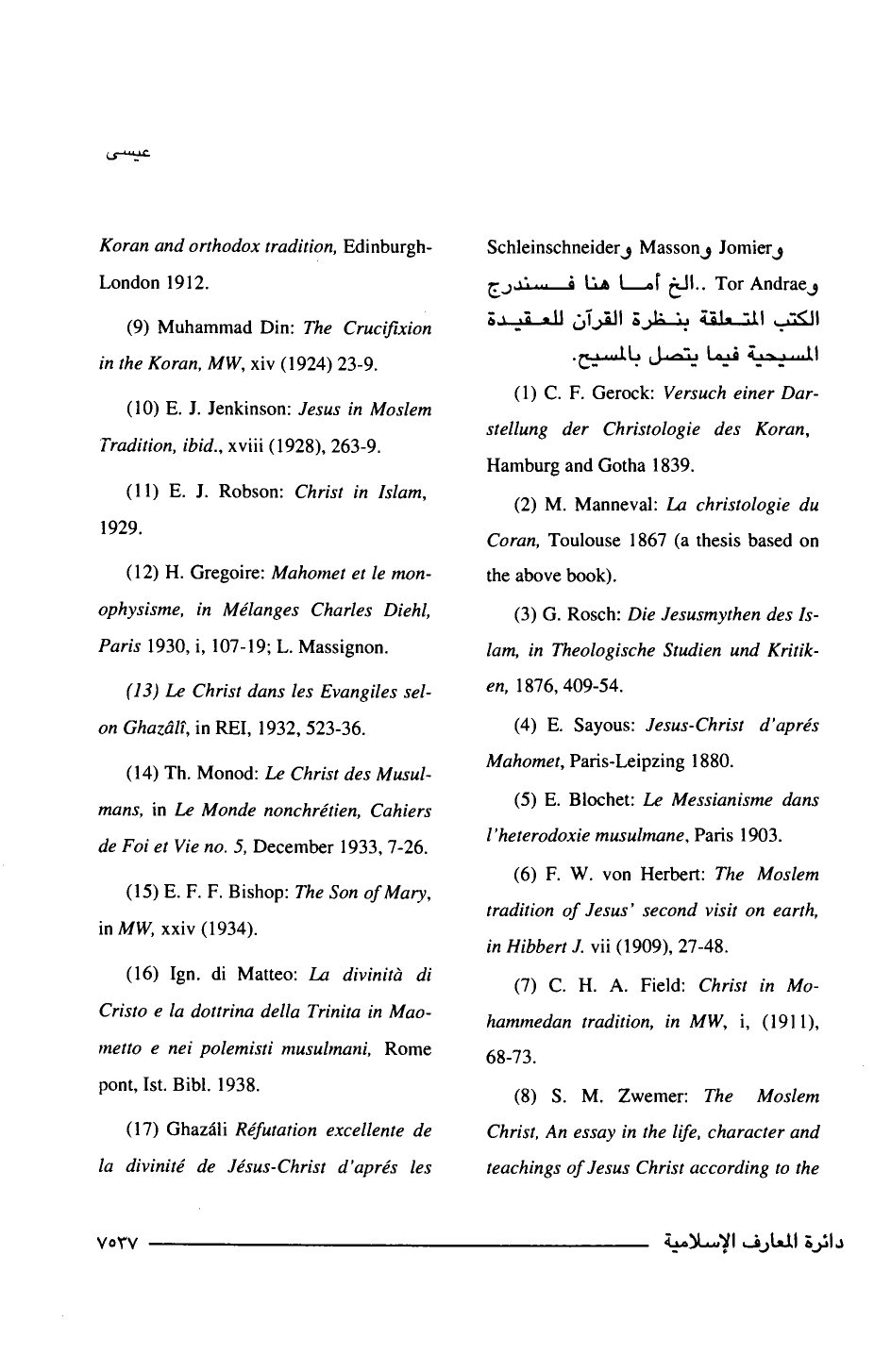 و Jomier و Masson و Schleinschneider و Tor Andrae . . الخ أما هنا فسندرج الكتب المتعلقة بنظرة القرآن للعقيدة المسيحية فيما يتصل بالمسيح.