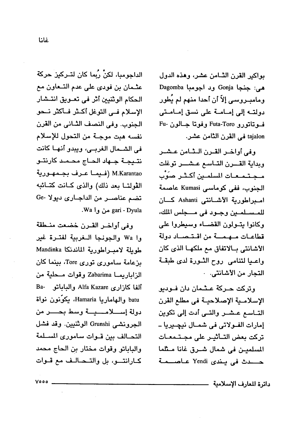 بواكير القرن الثامن عشر، وهذه الدول هى: جنجا Gonja وداجومبا Dagomba ومامبروسى إلّا أن أحدا منهم لم يُطور دولته إلى إمامة على نسق إمامتى فوتاتورو Futa-Toro وفوتا جالون Futajalon فى القرن الثامن عشر.