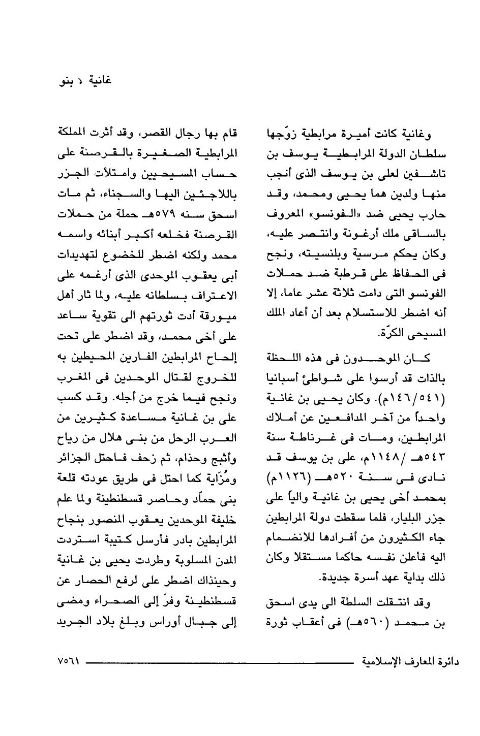 وغانية كانت أميرة مرابطية زوّجها سلطان الدولة المرابطية يوسف بن تاشفين لعلى بن يوسف الذى أنجب منها ولدين هما يحيى ومحمد، وقد حارب يحيى ضد "الفونسو" المعروف بالساقى ملك أرغونة وانتصر عليه، وكان يحكم مرسية وبلنسيته، ونجح فى الحفاظ على قرطبة ضد حملات الفونسو التى دامت ثلاثة عشر عاما، إلا أنه اضطر للاستسلام بعد أن أعاد الملك المسيحى الكرة.