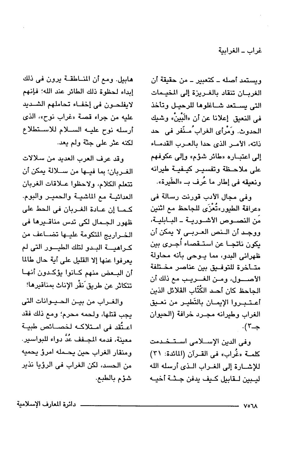 وقد عرف العرب العديد من سلالات الغربان؛ بما فيها من سلالة يمكن أن تتعلم الكلام، ولاحظوا علاقات الغربان العدائية مع الماشية والحمير والبوم. كما إن عادة الغربان فى الحط على ظهور الجمال لكى تدس مناقيرها فى الخراريج المتكومة عليها تضاعف من كراهية البدو لتلك الطيور التى لم يعرفوا عنها إلا القليل على أية حال طالما أن البعض منهم كانوا يؤكدون أنها تتكاثر عن طريقَ نقْر الإناث بمناقيرها!
