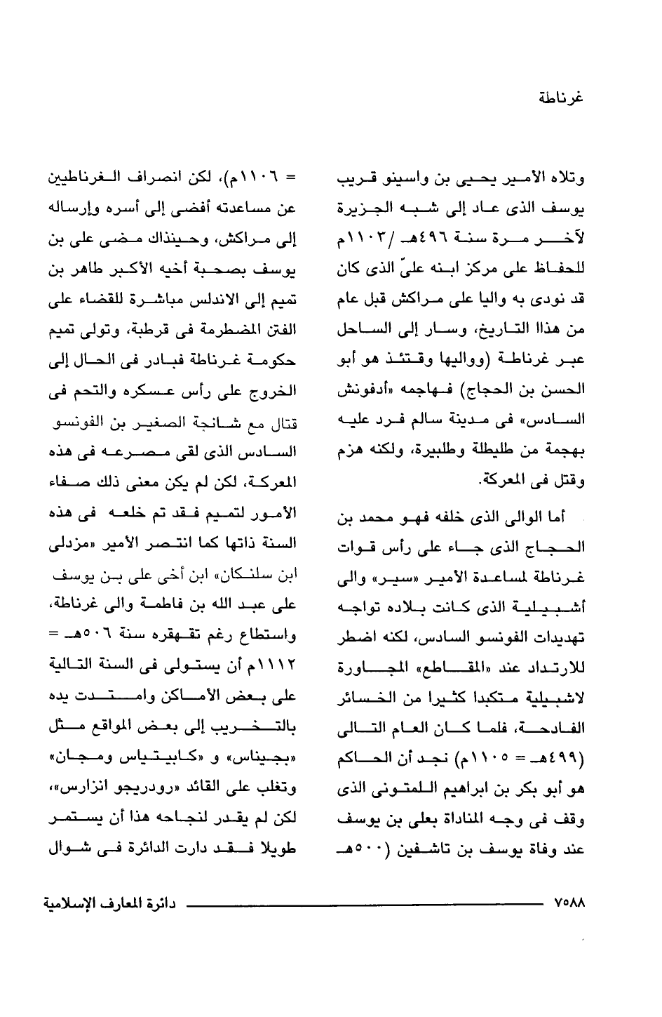 أما الوالى الذى خلفه فهو محمد بن الحجاج الذى جاء على رأس قوات غرناطة لمساعدة الأمير "سير" وإلى أشبيلية الذى كانت بلاده تواجه تهديدات الفونسو السادس، لكنه اضطر للارتداد عند "المقاطع" المجاورة لاشبيلية متكبدا كثيرا من الخسائر الفادحة، فلما كان العام التالى (499 هـ = 1105 م) نجد أن الحاكم هو أبو بكر بن إبراهيم اللمتونى الذى وقف فى وجه المناداة بعلى بن يوسف عند وفاة يوسف بن تاشفين (500 هـ = 1106 م)، لكن انصراف الغرناطيين عن مساعدته أفضى إلى أسره وإرساله إلى مراكش، وحينذاك مضى على بن يوسف بصحبة أخيه الأكبر طاهر بن تميم إلى الأندلس مباشرة للقضاء على الفتن المضطرمة فى قرطبة، وتولى تميم حكومة غرناطة فبادر فى الحال إلى الخروج على رأس عسكره والتحم فى قتال مع شانجة الصغير بن الفونسو السادس الذى لقى مصرعه فى هذه المعركة، لكن لم يكن معنى ذلك صفاء الأمور لتميم فقد تم خلعه فى هذه السنة ذاتها كما انتصر الأمير "مزدلى ابن سلنكان" ابن أخى على بن يوسف على عبد اللَّه بن فاطمة والى غرناطة، واستطاع رغم تقهقره سنة 506 هـ = 1112 م أن يستولى فى السنة التالية على بعض الأماكن وامتدت يده بالتخريب إلى بعض المواقع مثل "بجيناس" و"كابيتياس ومجان" وتغلب على القائد "رودريجو انزارس"، لكن لم يقدر لنجاحه هذا أن يستمر طويلا فقد دارت الدائرة فى شوال