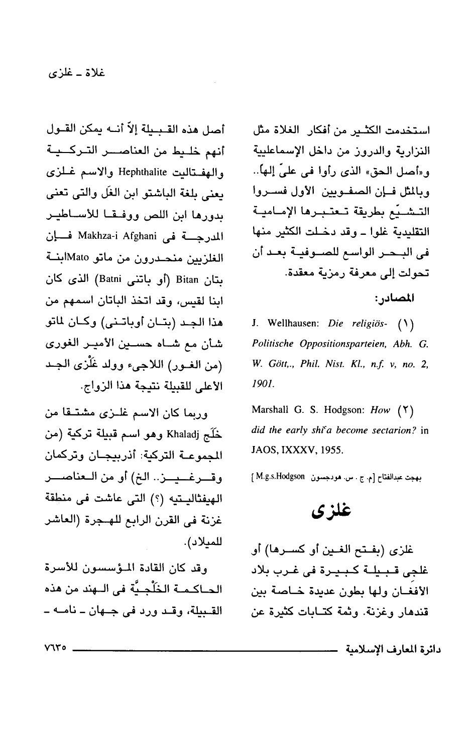 وربما كان الاسم غلزى مشتقا من خَلَج Khaladj وهو اسم قبيلة تركية (من المجموعة التركية أذربيجان وتركمان وقرغيز. . الخ) أو من العناصر الهيفثاليتيه (؟ ) التى عاشت فى منطقة غزنة فى القرن الرابع للهجرة (العاشر للميلاد).