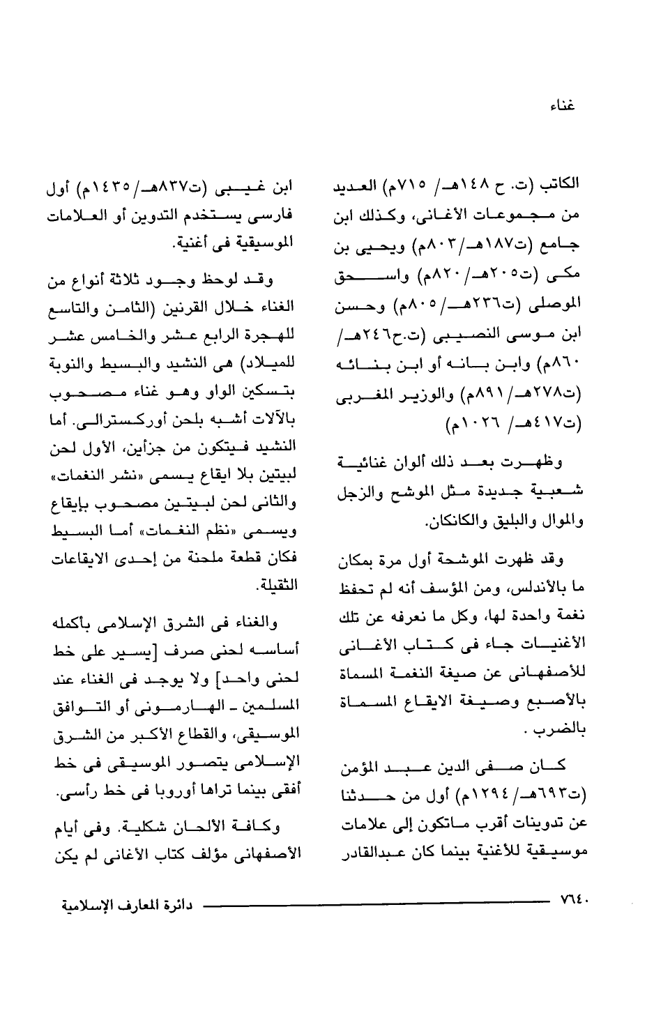 وكافة الألحان شكلية. وفى أيام الأصفهانى مؤلف كتاب الأغانى لم يكن