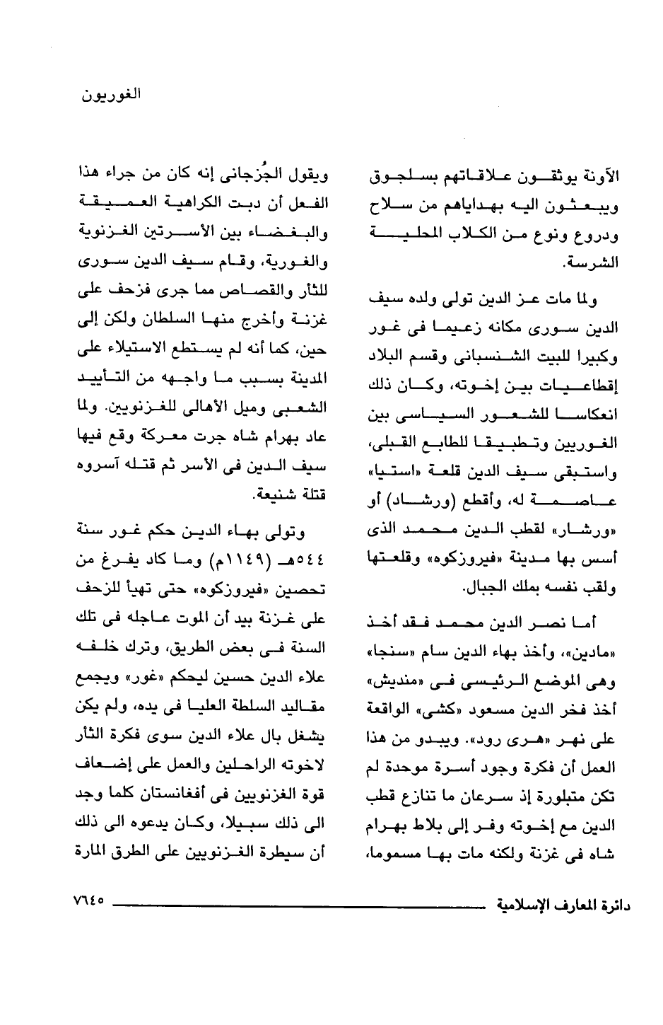 أما نصر الدين محمد فقد أخذ "مادين"، وأخذ بهاء الدين سام "سنجا" وهى الموضع الرئيسى فى "منديش" أخذ فخر الدين مسعود "كشى" الواقعة على نهر "هرى رود". ويبدو من هذا العمل أن فكرة وجود أسرة موحدة لم تكن متبلورة إذ سرعان ما تنازع قطب الدين مع إخوته وفر إلى بلاط بهرام شاه فى غزنة ولكنه مات بها مسموما، ويقول الجُزجانى إنه كان من جراء هذا الفعل أن دبت الكراهية العميقة والبغضاء بين الأسرتين الغزنوية والغورية، وقام سيف الدين سورى للثأر والقصاص مما جرى فزحف على غزنة وأخرج منها السلطان ولكن إلى حين، كما أنه لم يستطع الاستيلاء على المدينة بسبب ما واجهه من التأييد الشعبى وميل الأهالى للغزنويين. ولما عاد بهرام شاه جرت معركة وقع فيها سيف الدين فى الأسر ثم قتله آسروه قتلة شنيعة.