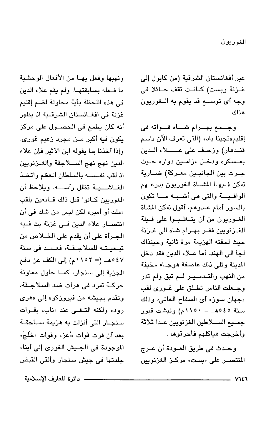 وجمع بهرام شاه قواته فى إقليم "تجينا باد" (التى تعرف الآن باسم قندهار) وزحف على علاء الدين بعسكره ودخل "زامين دوار" حيث جرت بين الجانبين معركة) ضارية تمكن فيها المشاة الغوريون بدرعهم الواقية والتى هى أشبه ما تكون بالسور أمام عدوهم، أقول تمكن المشاة الغوريون من أن يتغلبوا على فيلة الغزنويين ففر بهرام شاه إلى غزنة حيث لحقته الهزيمة مرة ثانية وحينذاك لجأ إلى الهند. أما علاء الدين فقد دخل المدينة وتلى ذلك عاصفة هوجاء مخيفة من النهب والتدمير لم تبق ولم تذر وجعلت الناس تطلق على غورى لقب "جهان سوز" أى السفاح العالمى، وذلك سنة 545 هـ (= 1150 م) ونبشت قبور جميع السلاطين الغزنويين عدا ثلاثة وأخرجت هياكلهم فأحرقوها.