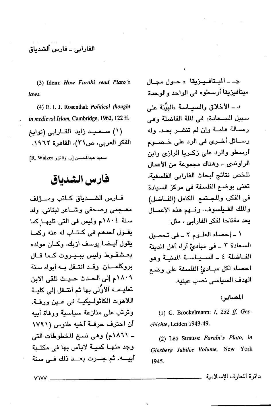 (5) سعيد زايد: الفارابى (نوابغ الفكر العربى، ص 31)، القاهرة 1962.