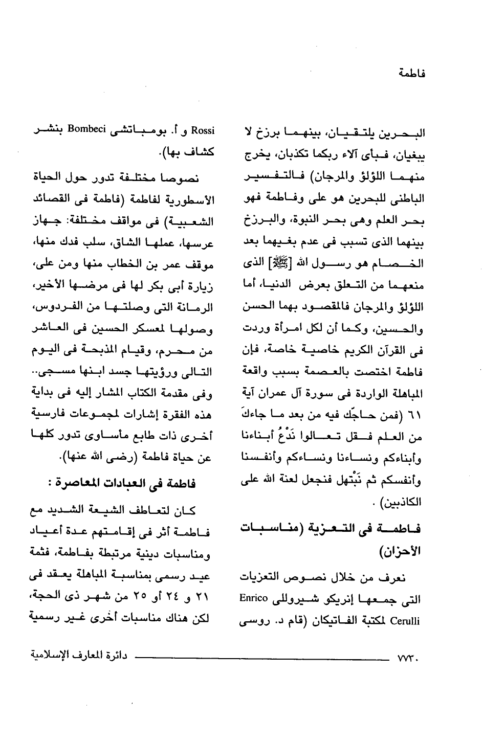 نصوصا مختلفة تدور حول الحياة الأسطورية لفاطمة (فاطمة فى القصائد الشعبية) فى مواقف مختلفة: جهاز عرسها، عملها الشاق، سلب فدك منها، موقف عمر بن الخطاب منها ومن على، زيارة أبى بكر لها فى مرضها الأخير، الرمانة التى وصلتها من الفردوس، وصولها لمعسكر الحسين فى العاشر من محرم، وقيام المذبحة فى اليوم التالى ورؤيتها جسد ابنها مسجى. . وفى مقدمة الكتاب المشار إليه فى بداية هذه الفقرة إشارات لمجموعات فارسية أخرى ذات طابع مأساوى تدور كلها عن حياة فاطمة (رضى اللَّه عنها).