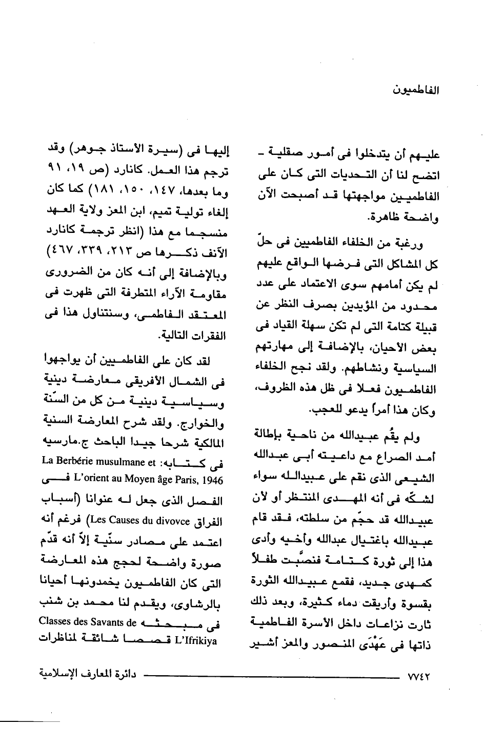 ولم يقُم عبيد اللَّه من ناحية بإطالة أمد الصراع مع داعيته أبى عبد اللَّه الشيعى الذى نقم على عبيد اللَّه سواء لشكّه فى أنه المهدى المنتظر أو لأن عبيد اللَّه قد حجّم من سلطته، فقد قام عبيد اللَّه باغتيال عبد اللَّه وأخيه وأدى هذا إلى ثورة كتامة فنصَّبت طفلًا كمهدى جديد، فقمع عبيد اللَّه الثورة بقسوة وأريقت دماء كثيرة، وبعد ذلك ثارت نزاعات داخل الأسرة الفاطمية ذاتها فى عَهْدَى المنصور والمعز أشير إليها فى (سيرة الأستاذ جوهر) وقد ترجم هذا العمل. كانارد (ص 19، 91 وما بعدها، 147، 150, 181) كما كان إلغاء تولية تميم، ابن المعز ولاية العهد منسجما مع هذا (انظر ترجمة كانارد الآنف ذكرها ص 213، 339, 467) وبالإضافة إلى أنه كان من الضرورى مقاومة الآراء المتطرفة التى ظهرت فى المعتقد الفاطمى، وسنتناول هذا فى الفقرات التالية.