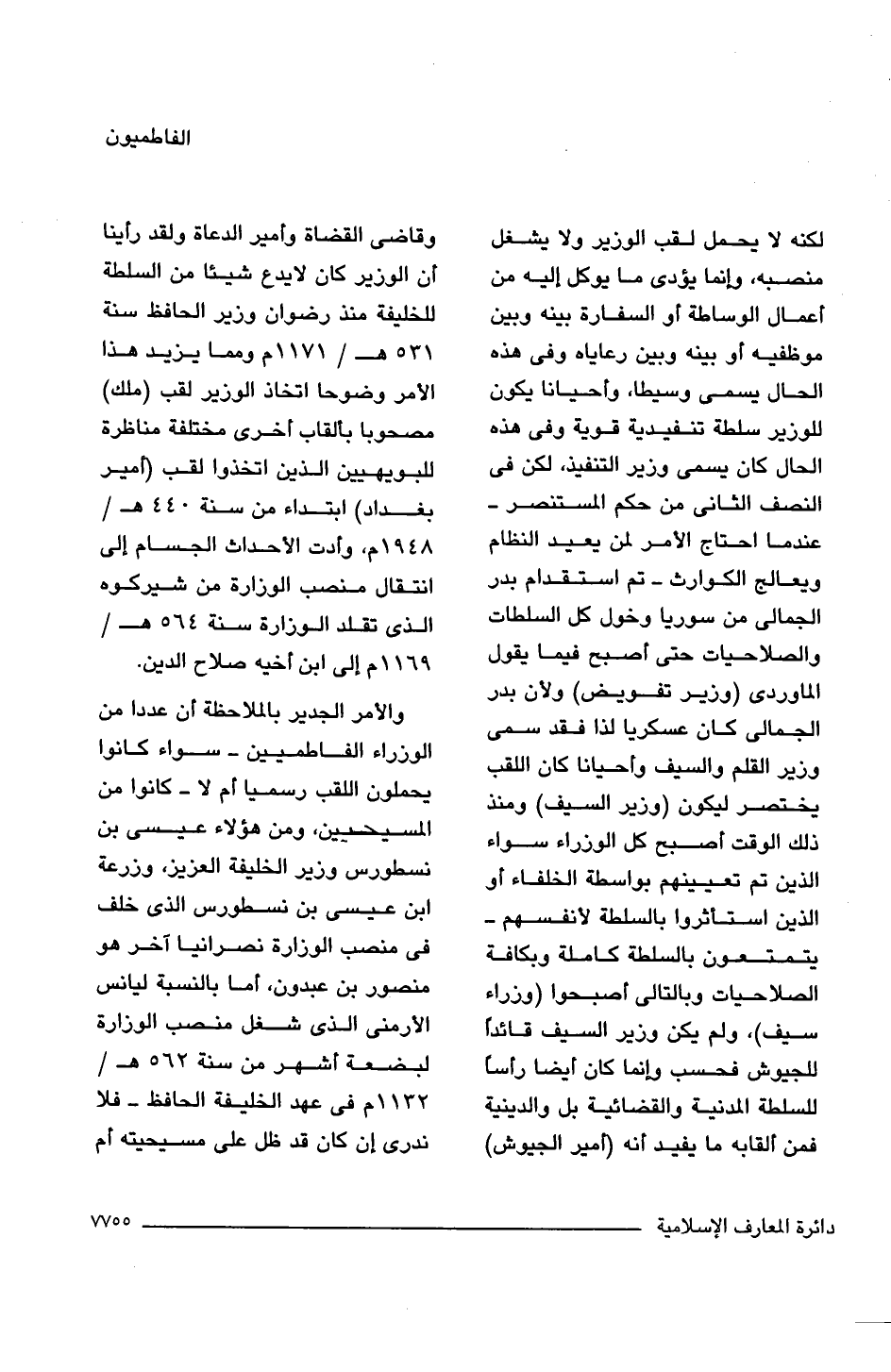 والأمر الجدير بالملاحظة أن عددا من الوزراء الفاطميين -سواء كانوا يحملون اللقب رسميا أم لا- كانوا من المسيحيين، ومن هؤلاء عيسى بن نسطورس وزير الخليفة العزيز، وزرعة ابن عيسى بن نسطورس الذى خلف فى منصب الوزارة نصرانيا آخر هو منصور بن عبدون، أما بالنسبة ليانس الأرمنى الذى شغل منصب الوزارة لبضعة أشهر من سنة 562 هـ/ 1132 م فى عهد الخليفة الحافظ -فلا ندرى إن كان قد ظل على مسيحيته أم