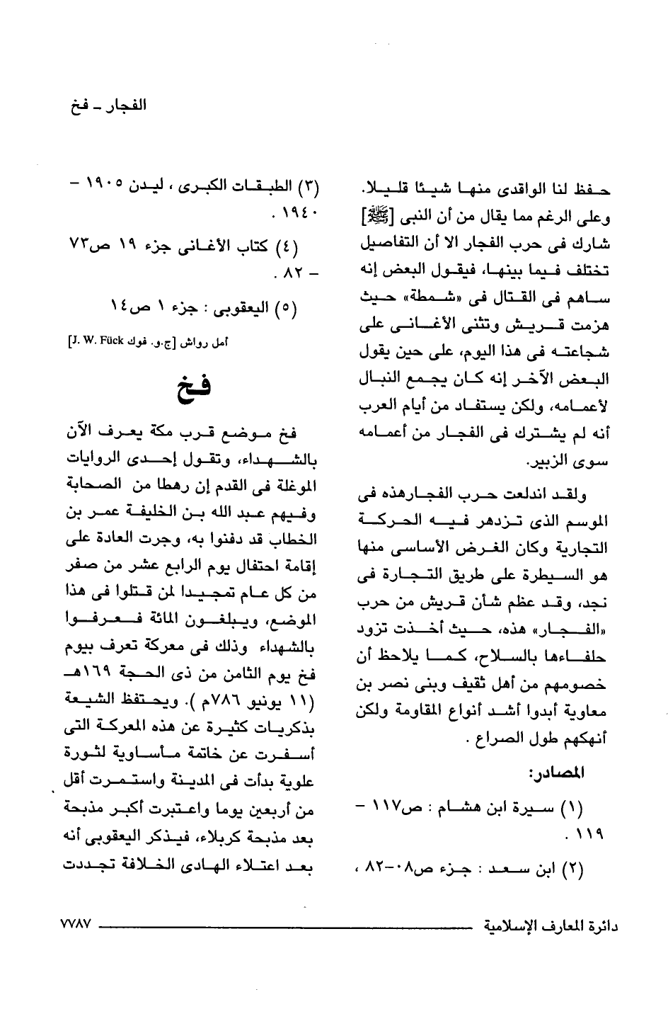حفظ لنا الواقدى منها شيئا قليلا. وعلى الرغم مما يقال من أن النبى [-صلى اللَّه عليه وسلم-] شارك فى حرب الفجار إلا أن التفاصيل تختلف فيما بينها، فيقول البعض إنه ساهم فى القتال فى "شمطة" حيث هزمت قريش وتثنى الأغانى على شجاعته فى هذا اليوم، على حين يقول البعض الآخر إنه كان يجمع النبال لأعمامه، ولكن يستفاد من أيام العرب أنه لم يشترك فى الفجار من أعمامه سوى الزبير.