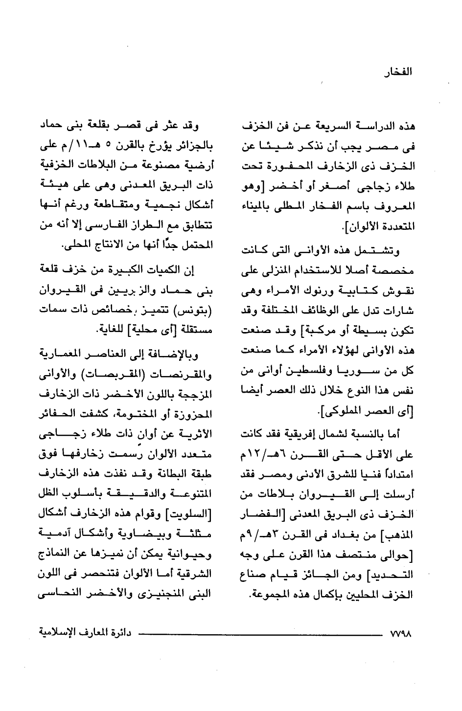 هذه الدراسة السريعة عن فن الخزف فى مصر يجب أن نذكر شيئًا عن الخزف ذى الزخارف المحفورة تحت طلاء زجاجى أصغر أو أخضر [وهو المعروف باسم الفخار المطلى بالميناء المتعددة الألوان].