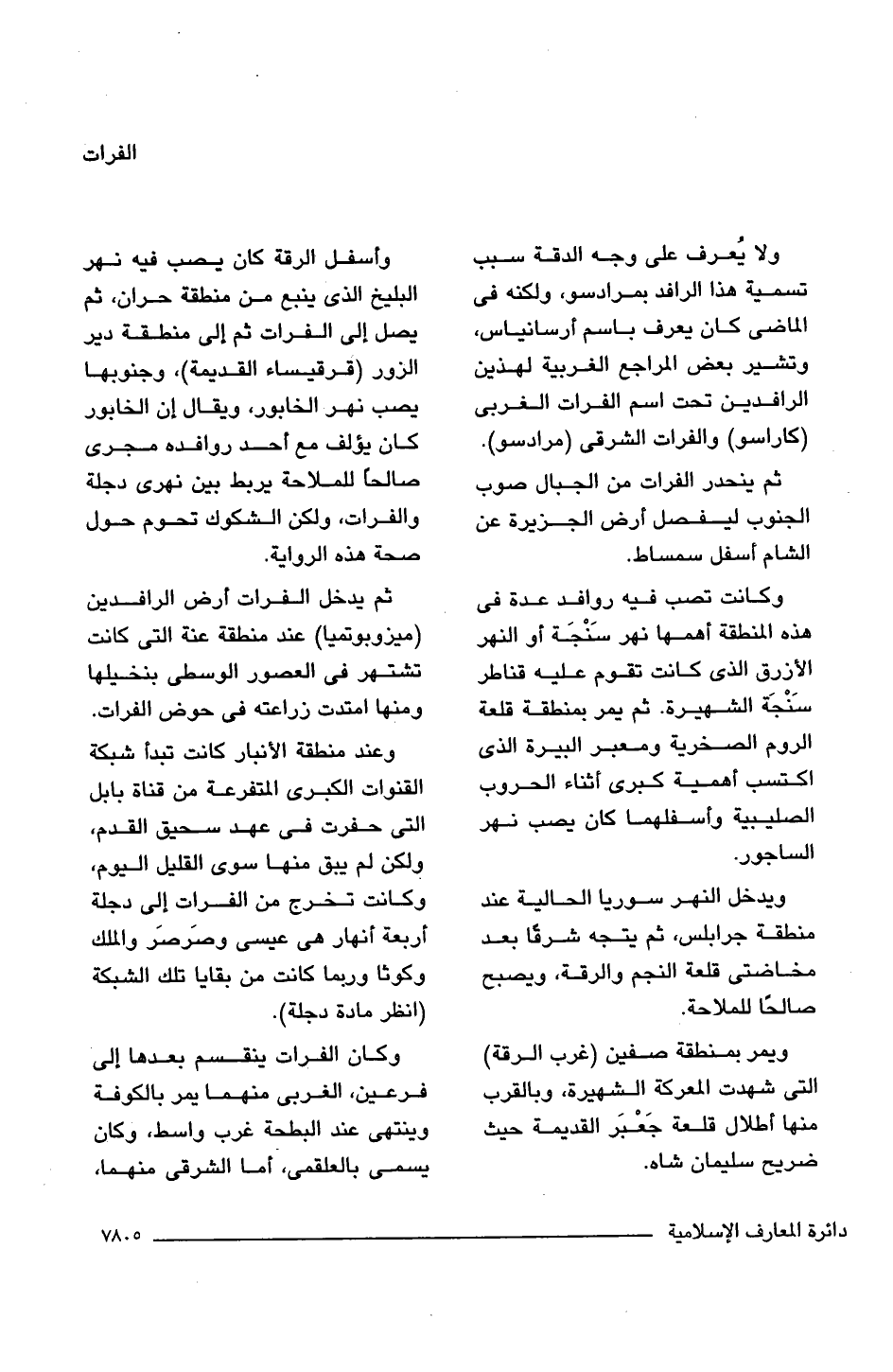 ثم يدخل الفرات أرض الرافدين (ميزوبوتميا) عند منطقة عنة التى كانت تشتهر فى العصور الوسطى بنخيلها ومنها امتدت زراعته فى حوض الفرات.