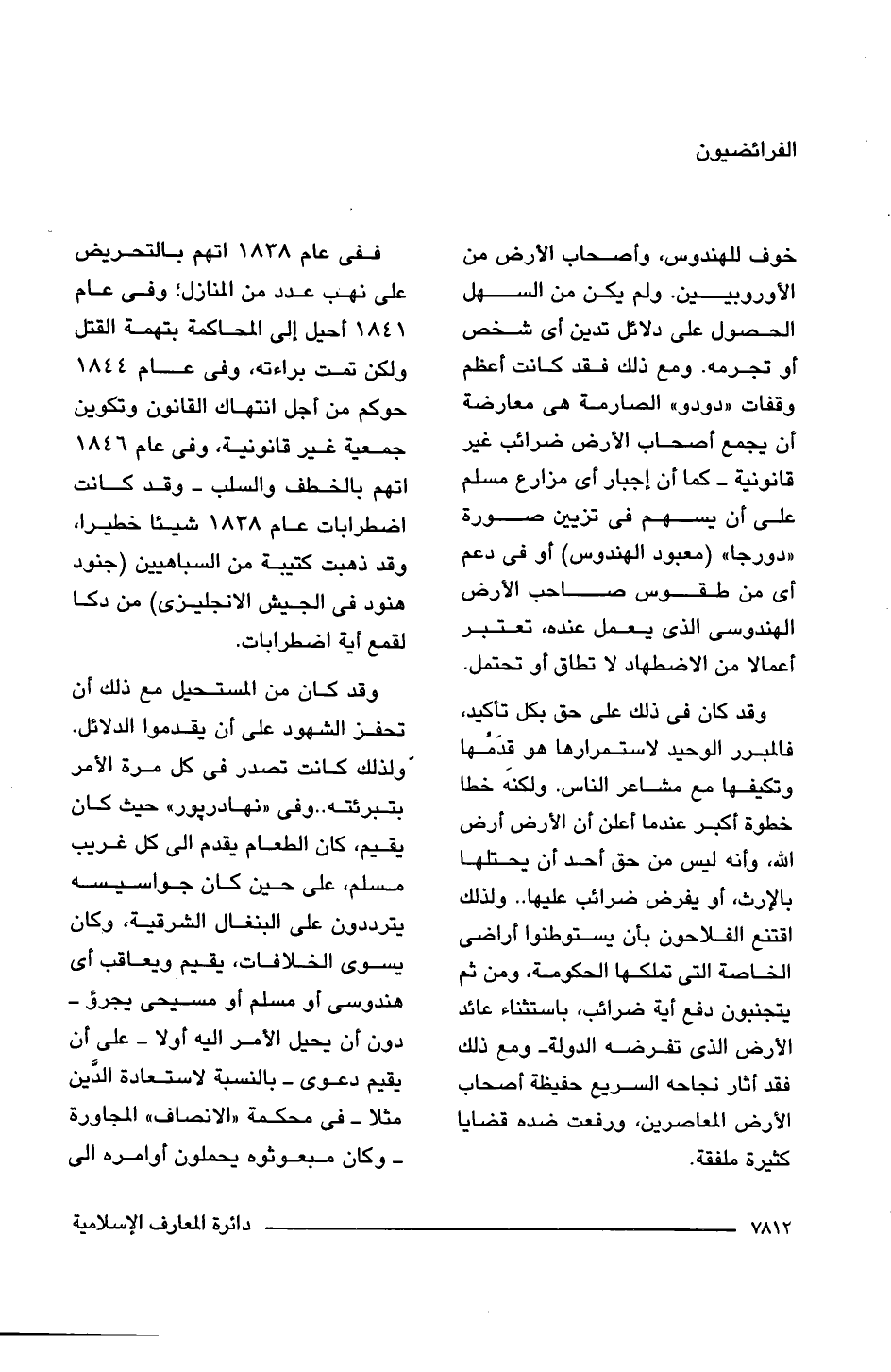 خوف للهندوس، وأصحاب الأرض من الأوروبيين. ولم يكن من السهل الحصول على دلائل تدين أى شخص أو تجرمه. ومع ذلك فقد كانت أعظم وقفات "دودو" الصارمة هى معارضة أن يجمع أصحاب الأرض ضرائب غير قانونية -كما أن إجبار أى مزارع مسلم على أن يسهم فى تزيين صورة "دورجا" (معبود الهندوس) أو فى دعم أى من طقوس صاحب الأرض الهندوسى الذى يعمل عنده، تعتبر أعمالا من الاضطهاد لا تطاق أو تحتمل.