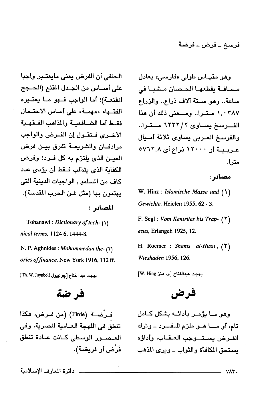 (1) W. Hinz: Islamische Masse and Gewichte, Heiclen 1955, 62 - 3