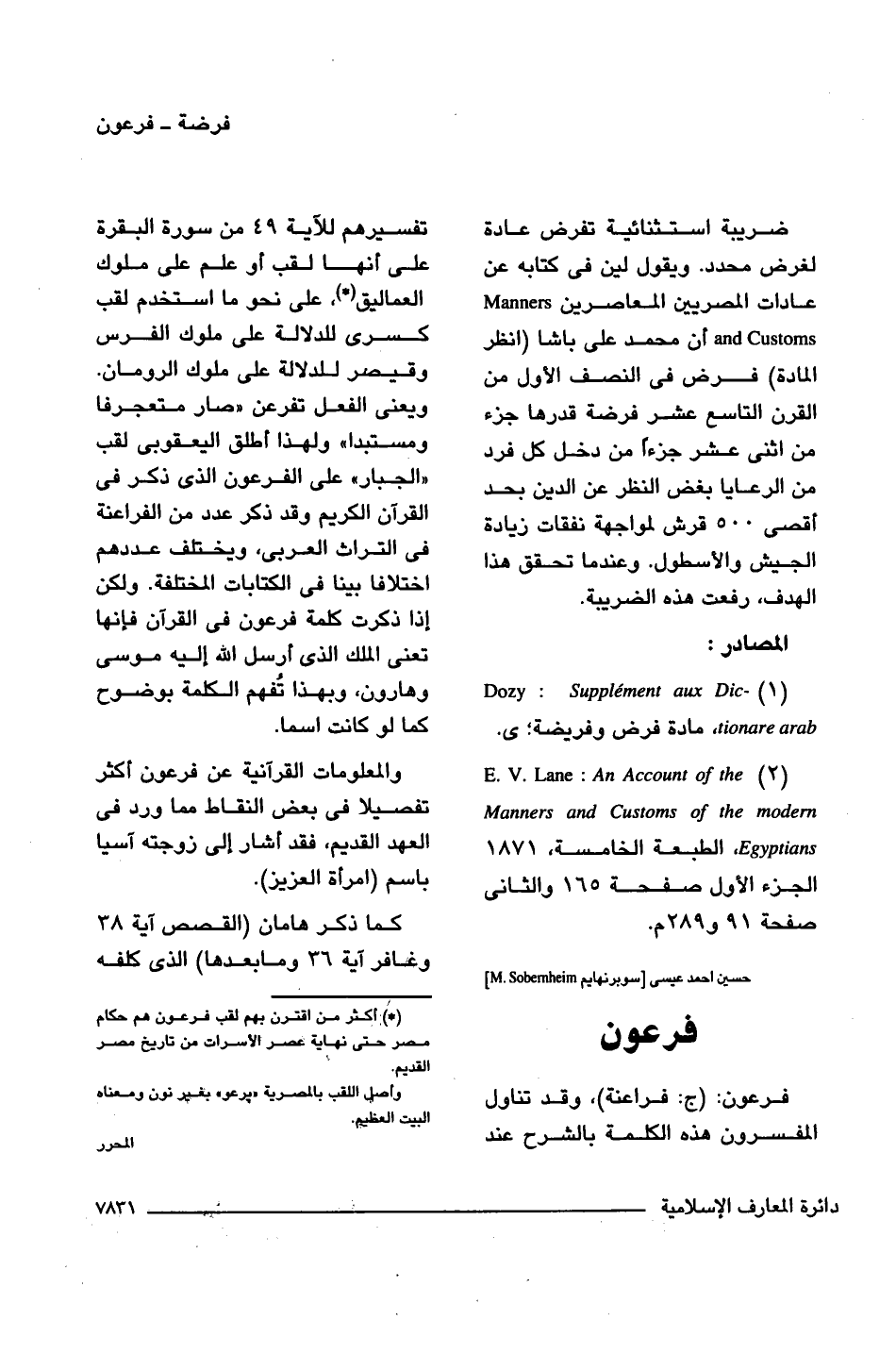 (1) Dozy: Supplement aux Dictionare arab، مادة فرض وفريضة.